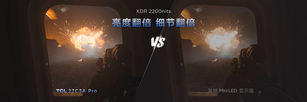 再回到27C3A Pro 身上,想要理解 27C3A Pro 为何被称为 “细节悍将”,就不得不提到 Mini LED 的核心优势,那就是Mini LED 依靠大量微型灯珠组成背光矩阵,可以实现对画面不同区域亮度的精准控制,画面细节精度大幅提升,尤其在光影复杂、场景宏大的 3A 游戏中,优势格外明显。而27C3A Pro 搭载的万象分区 QD-Mini LED 技术,就是一整套从光源到成像的完整画质优化系统,将“光”和“影”彻底玩透了。