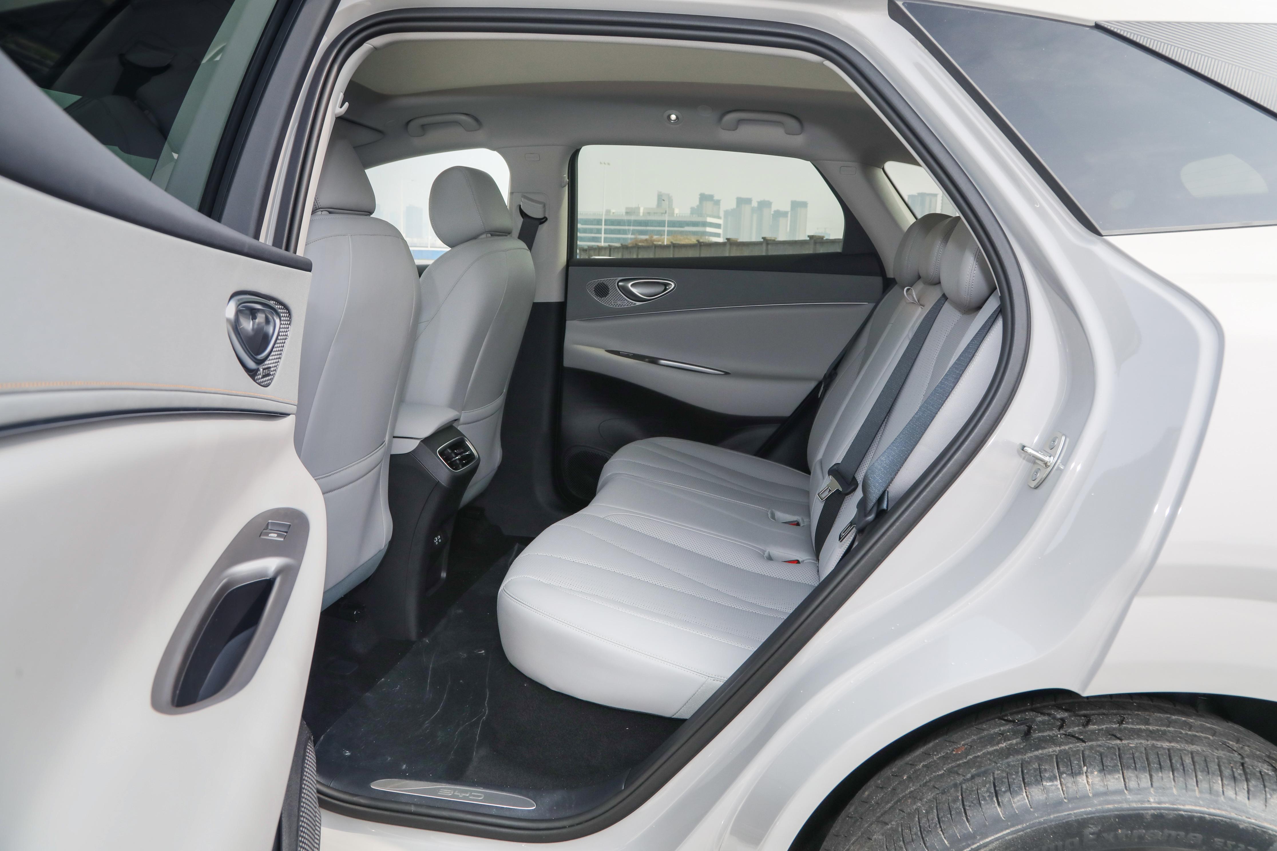 空间方面,海狮06EV同样表现出色。车身尺寸为4810mm×1920mm×1675mm,轴距达到了2820mm。作为一台中型SUV,后排坐进去两个成年人,腿部空间非常宽敞。而且后排地板是纯平的,中间乘客的脚也有地方放。让我惊喜的是,它还有一个142L的超大前备箱,实测放一个24寸的行李箱完全没问题,再塞个随身包也绰绰有余。