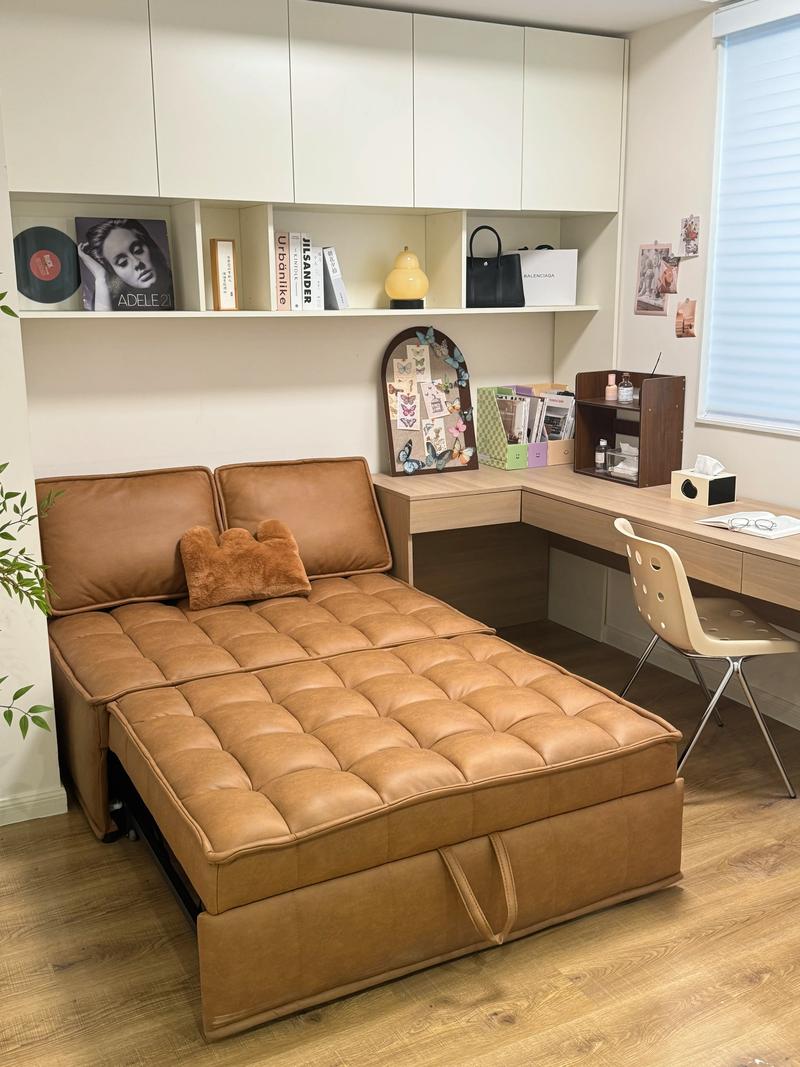 折叠床/沙发床:客厅放一张沙发床,平时是沙发,客人来了展开就是床,客厅瞬间变“临时客房”;卧室放一张折叠床,白天收起来靠在墙边,地面就能腾出空间做办公区/瑜伽区,晚上放下来就是睡眠区。
