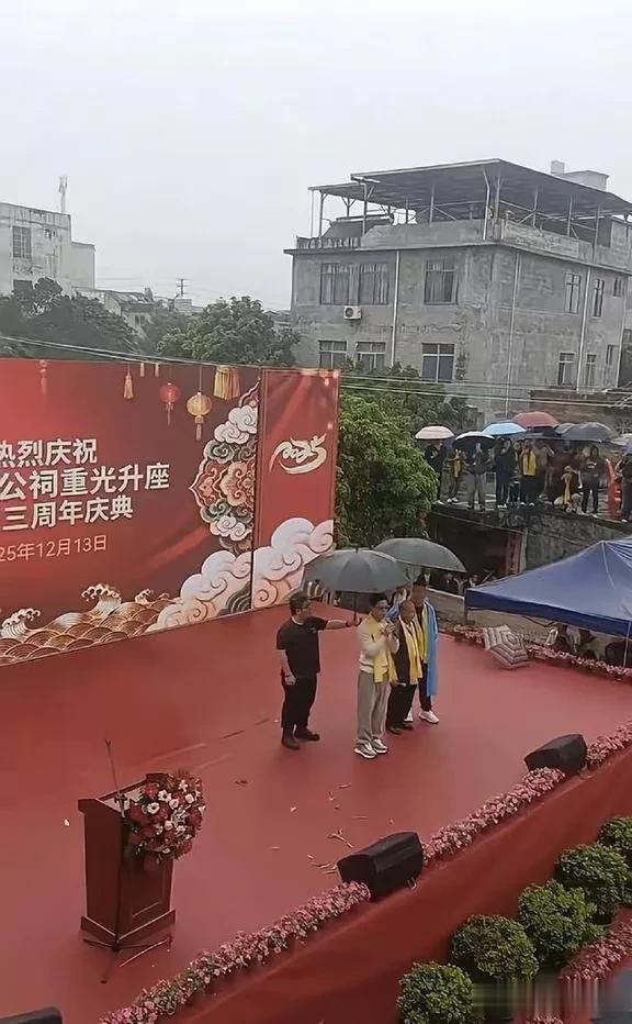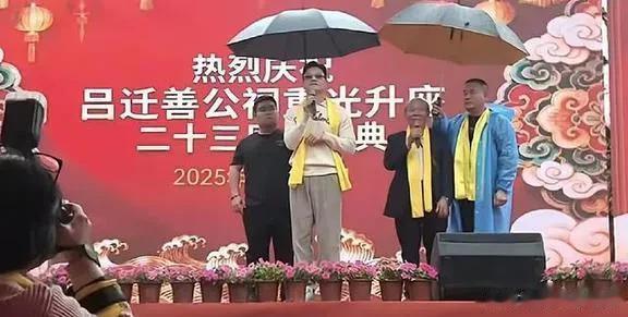吕良伟带儿子吕善扬回老家祭祖,父子同框,儿子始终为老爸撑伞,开始还以为是工作人员