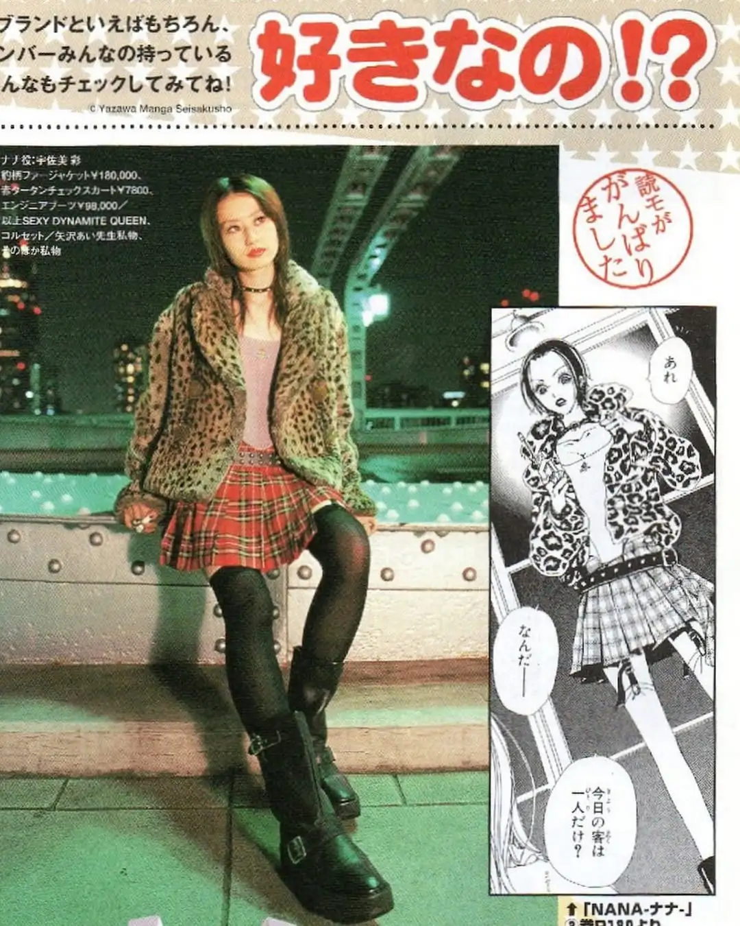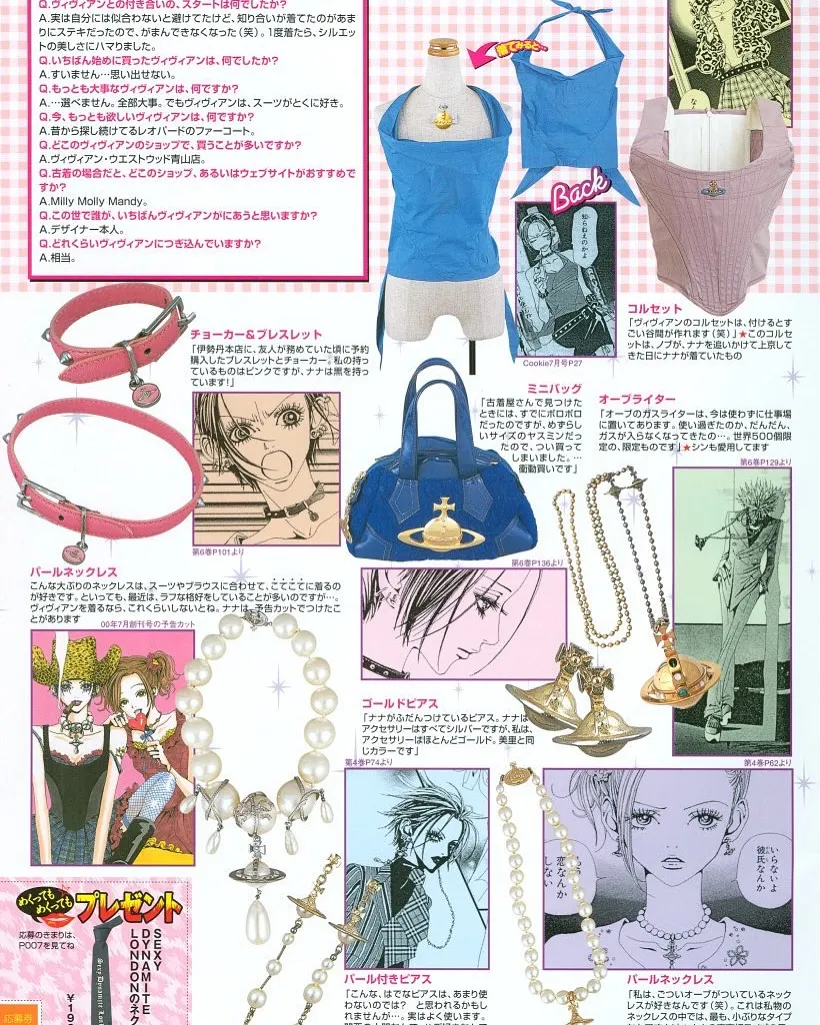 此外,《NANA》并非只是被时代影响,也反过来推动了 Vivienne Westwood 在亚洲的再度流行。在连载期间,不少单品销量在日本显著上升,包括「漫画同款」的饰品、格纹单品等等,店铺也会出现大量因作品而前去「朝圣」的读者,甚至直到今天,在各类社交平台上仍随处可见因为 NANA 入坑西太后的讨论,许多亚文化穿衣风格甚至直接以「NANA 系」命名,衍生成为一种独立的美学标签。