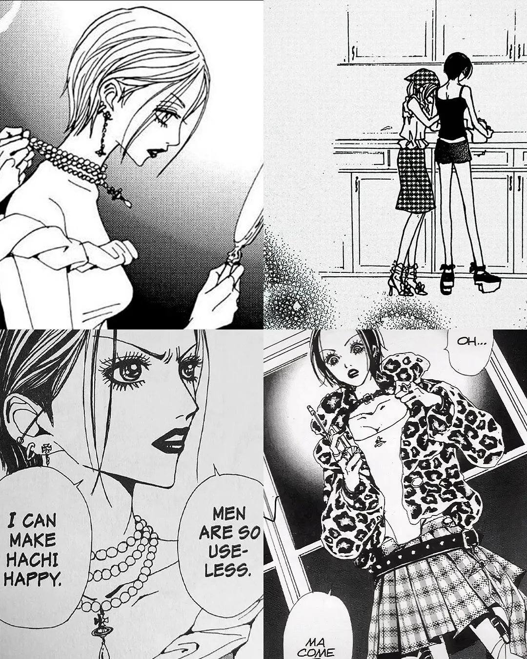 所以说,在《NANA》的世界中,Vivienne Westwood 从来就不只是客串,而是贯穿剧情、人物性格乃至命运走向的精神图腾。在探讨亲密关系、创伤、自我身份认同等深刻主题的同时,还可谓一份关于 Y2K 东京亚文化的时尚教材,甚至从头到尾,它都像是作者矢泽爱写给 Vivienne Westwood 的一封情书。