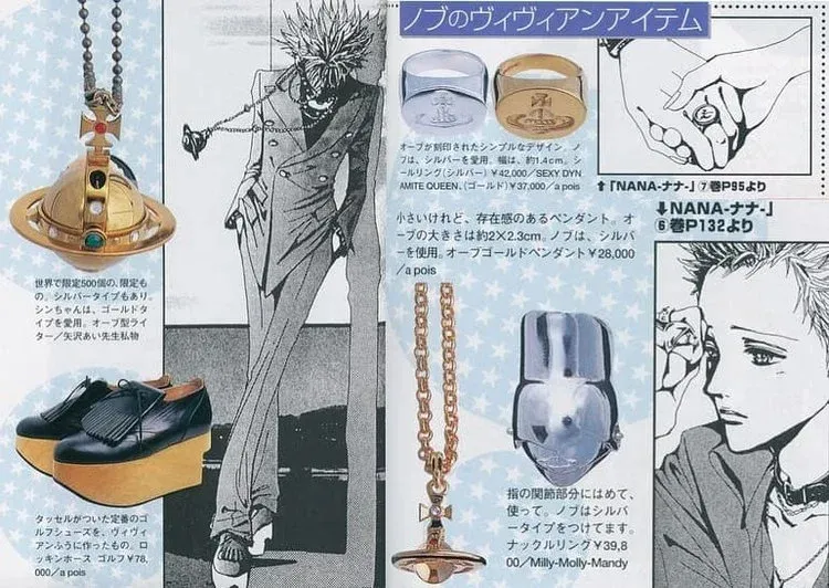 所以可以说,Vivienne Westwood 之于《NANA》中的存在,从一开始就不仅是造型层面的装饰,而是一种叙事上的态度符号。前者所代表的朋克文化以反叛、自由、不受传统框架束缚为核心,这正是《NANA》要表达的灵魂,重要的是这种紧密的连接并非偶然,而是源于当时真实的时代背景,反映了品牌对于当时日本年轻群体的极高影响力。