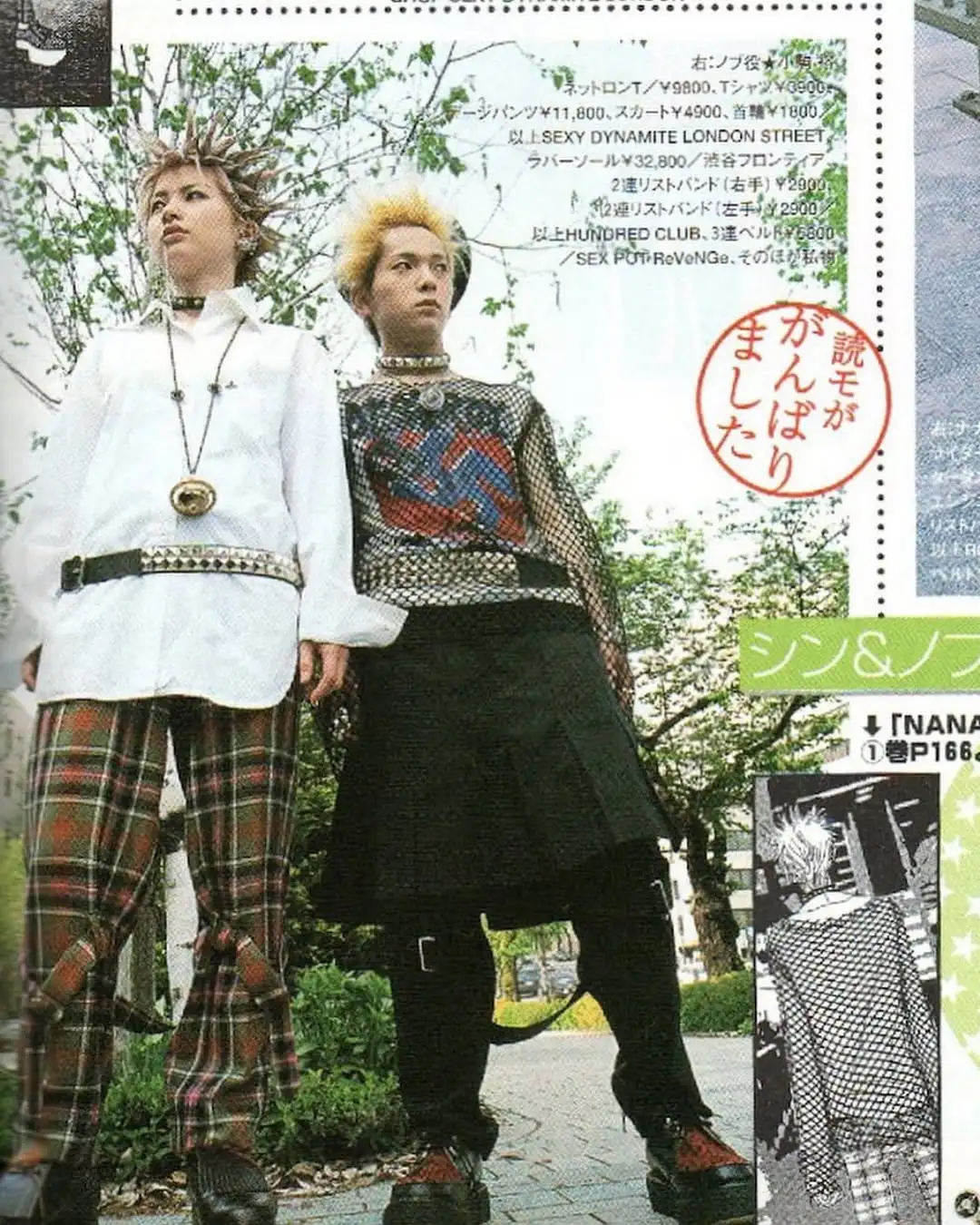 作为 Vivienne Westwood 的忠实粉丝,矢泽爱提到自己在 90 年代末期经常频繁前往代官山与表参道的店铺,这份个人审美喜好最终全部注入作品之中,在创作时她几乎是以西太后的美学来构建角色的时尚体系,核心人物的造型也几乎是对自身审美的一种延展,而不是简单借用「朋克」这一流行标签。