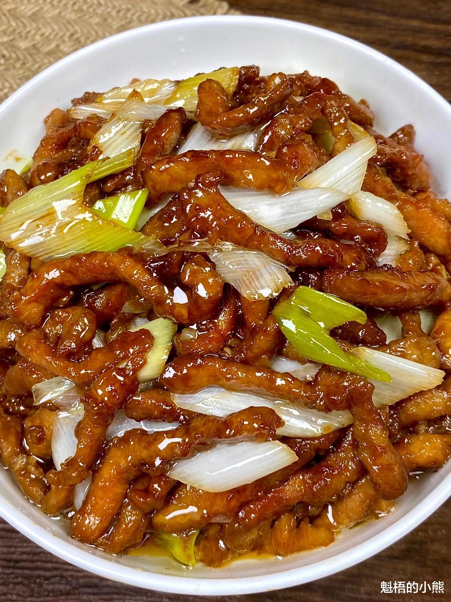 做好的大葱炒瘦肉,肉丝油亮,裹着酱红色的汤汁,大葱翠白相间,散发着浓郁的葱香和酱香。夹一筷子送进嘴里,肉丝嫩滑,一点都不柴,酱汁咸甜适口,大葱脆甜,带着微微的辛辣,正好解了肉丝的油腻。最妙的是酱汁,浓稠透亮,拌着米饭吃,能多吃一碗。大葱炒过之后辛辣味变淡,只剩清甜和脆嫩,不爱吃生葱的人也能接受。