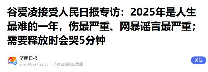 济南日报 2026-01-27——谷爱凌接受人民日报专访:2025年是人生最难的一年,伤最严重、网暴谣言最严重;需要释放时会哭5分钟