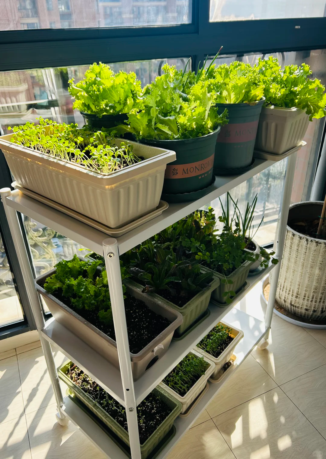 但又不得不“屈服”于现实,只在小小的花盆里种菜,为了蔬菜可以茁壮成长,买各种花土花肥。
