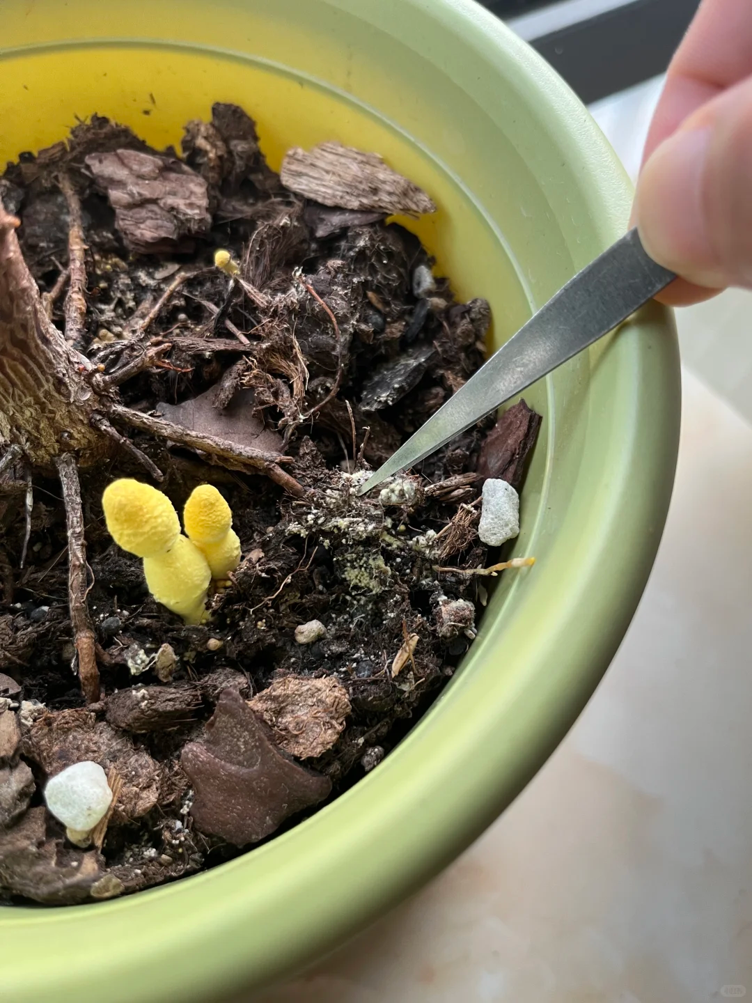 --拼多多买的树,有3个月了,回来没有换土,最近一直阴天下雨,突然里面长出了黄色的蘑菇,这个蘑菇有毒吗?