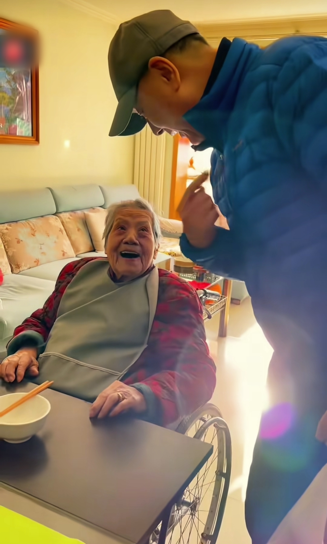 值得一提的是,王全有不但对妻子非常疼爱,他对岳母也是非常孝顺,虽然王全有的岳母如今已经95岁,但是老人家看到王全有显得非常高兴。