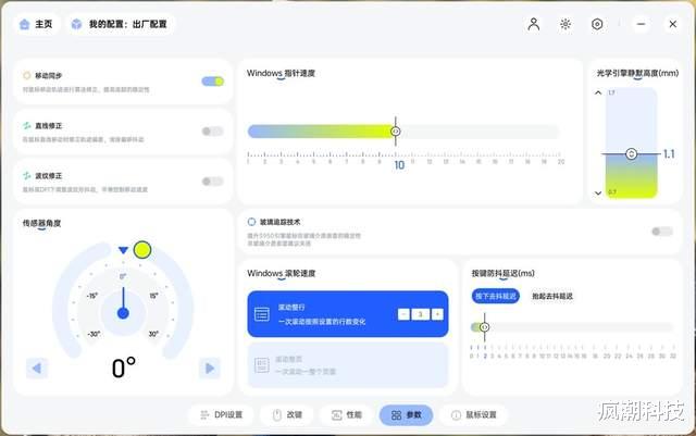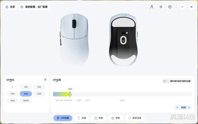 附上一组在雷柏A HUB下的设置页面,因为鼠标顶部的DPI调节按键没有配备,所以,如果你想要调整DPI,需要在定制应用中进行调整;另外,雷柏独有的狂暴竞技模式,也是在这里进行调整设置的。因为应用中可玩的内容比较多,所以我就不在这里赘述了!