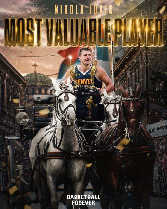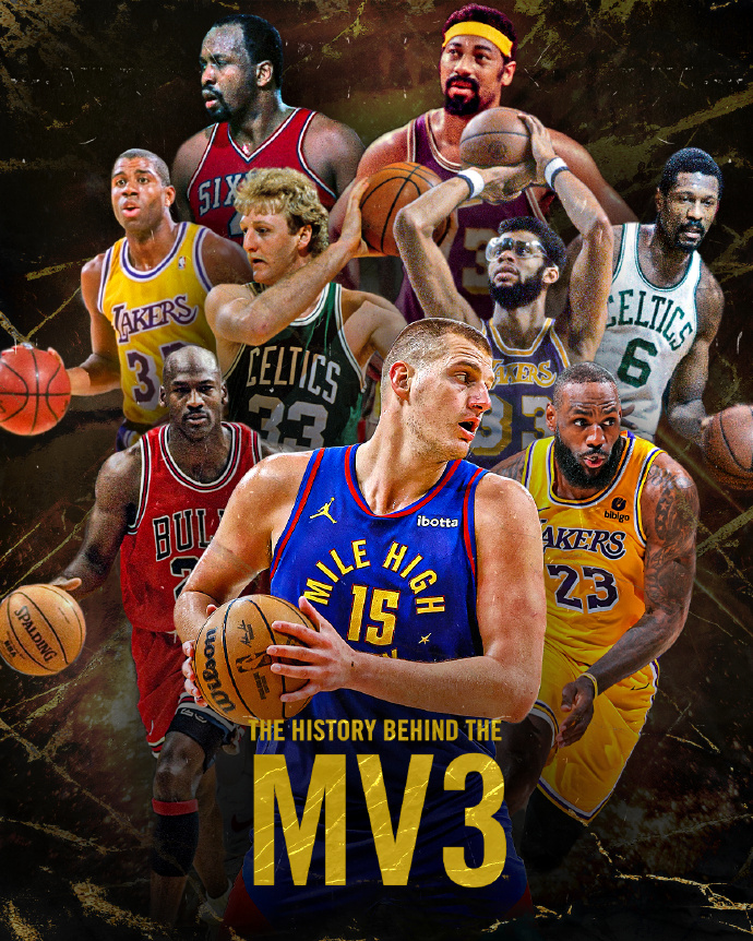 约基奇目前已经拿到3个MVP,由此成为NBA历史上第9位至少拿到3个MVP的球员,比肩贾巴尔(6)、乔丹(5)、比尔-拉塞尔(5)、张伯伦(4)、詹姆斯(4)、拉里-伯德(3)、魔术师(3)、摩西-马龙(3),这些都是历史级别的巨星,而且除了摩西-马龙,另外几位都是公认的历史前十巨星。在现役球员中,约基奇也仅次于詹姆斯了。