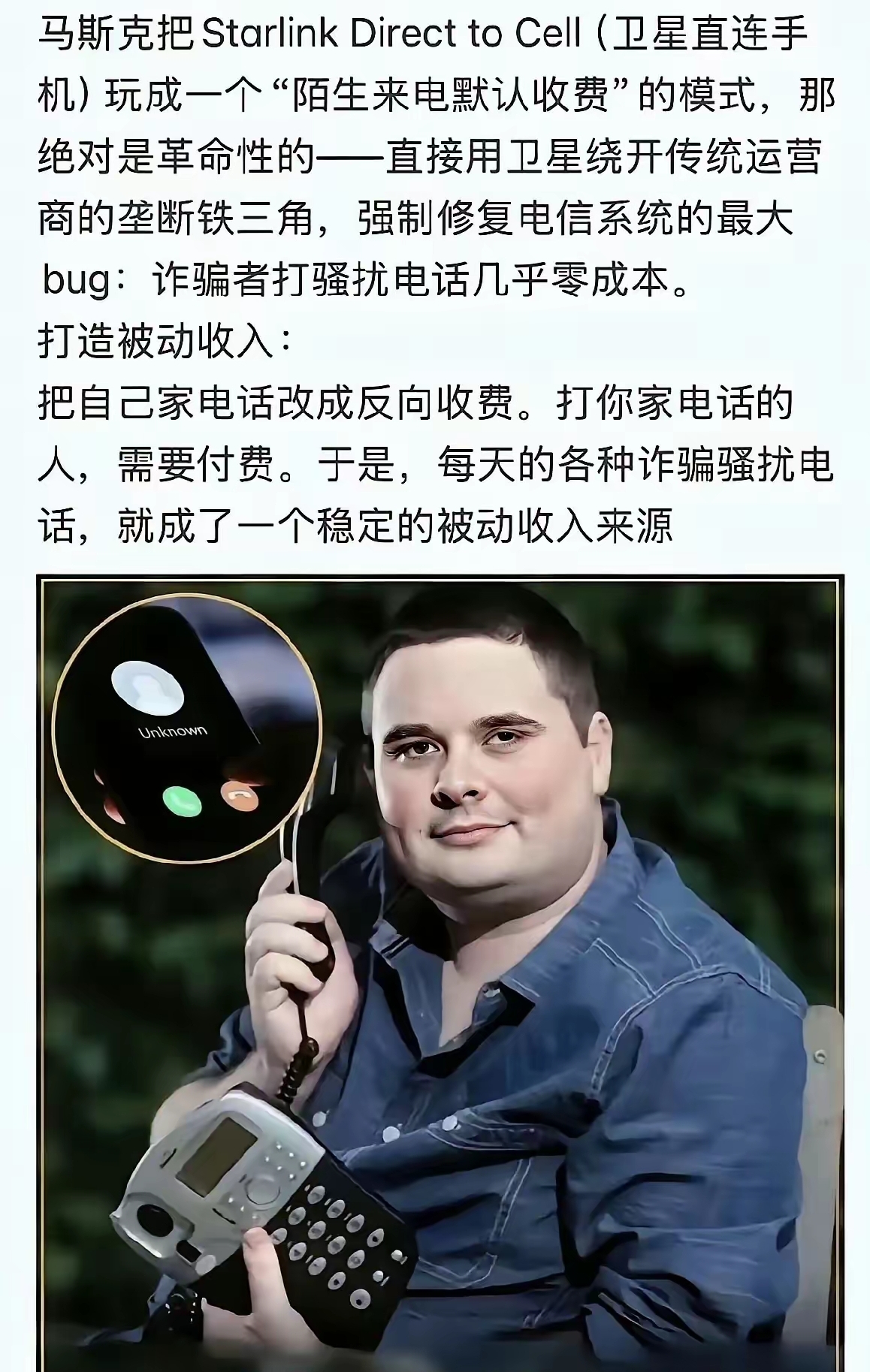 全网被马斯克的新操作惊到了!这位科技狂人又出奇招,宣布要把Starlink Direct to Cell(卫星直连手机)功能,玩成“陌生来电默认收费”模式,一句话直击痛点——以后陌生号码打你电话,得先掏钱,轻松就能根治让人头大的骚扰电话。