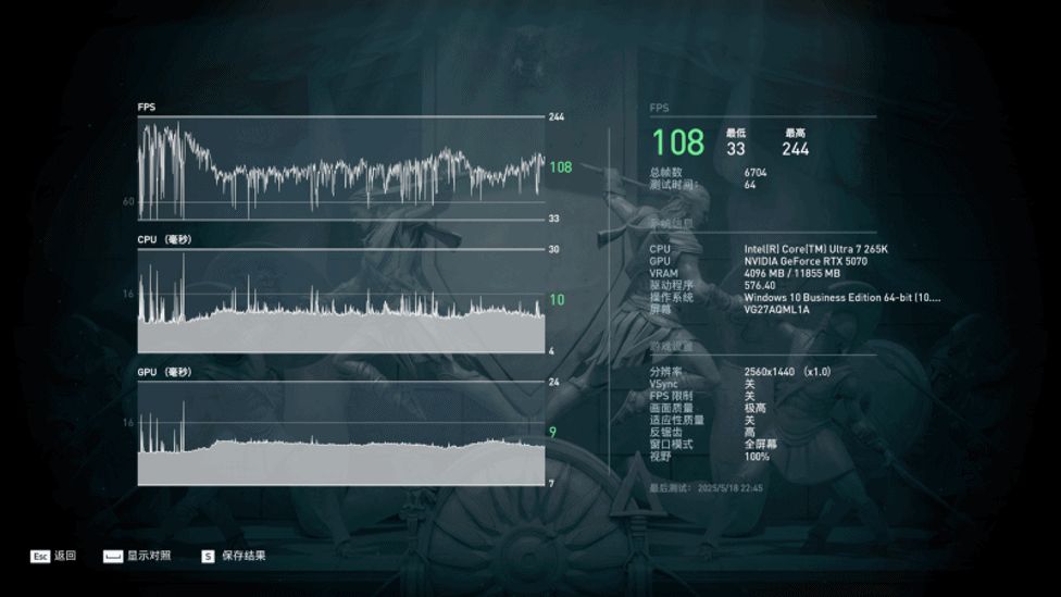 众生平等奥德赛,2K分辨率,画质极高,平均帧率108。英灵殿,2K分辨率,画质极高,平均帧率133。孤岛惊魂6,2K分辨率,画质极高,平均帧率156。