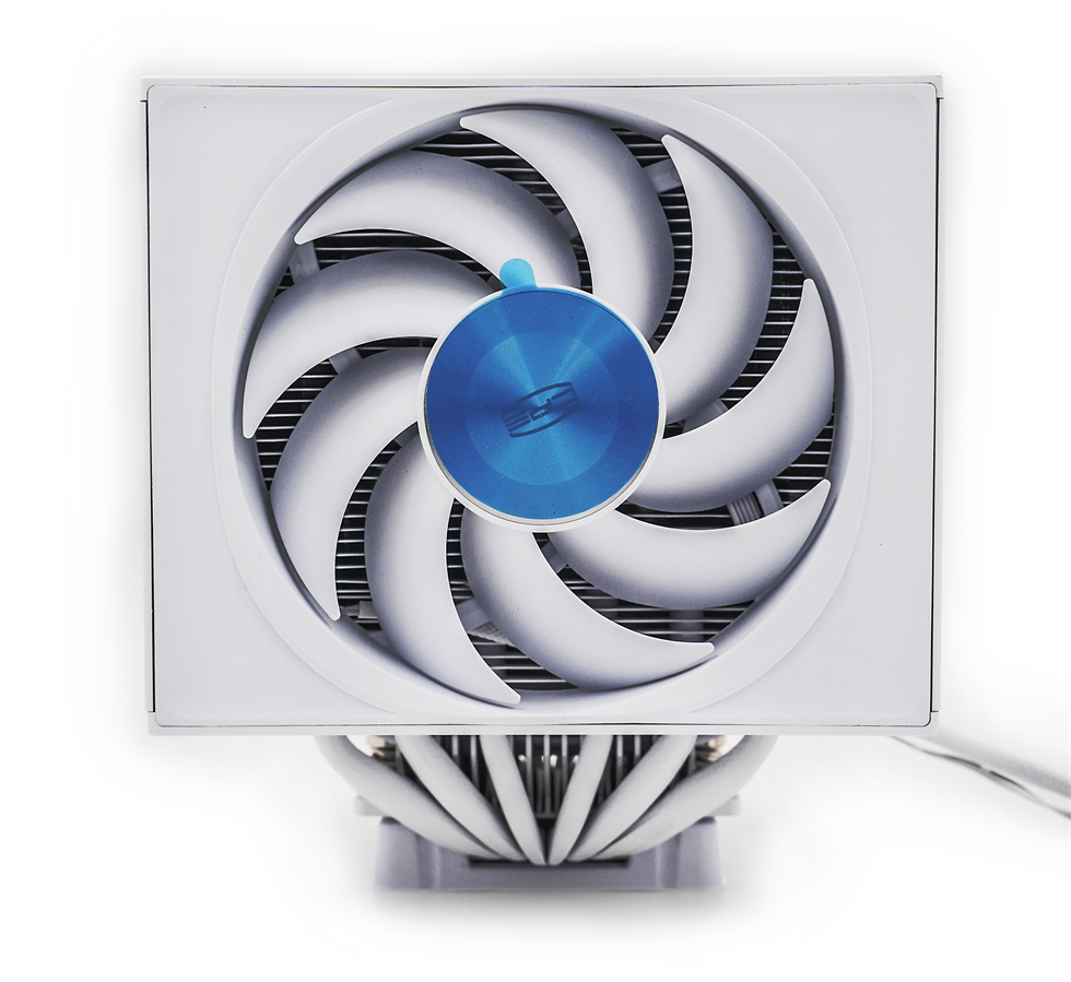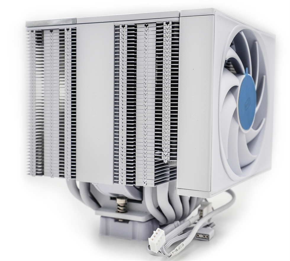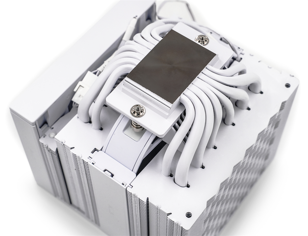 RZ820整体造型方正硬朗,两个风扇出厂即固定在散热本体上,当前三围达161×150×165mm,重量也达到了1.85kg,堪称巨无霸。