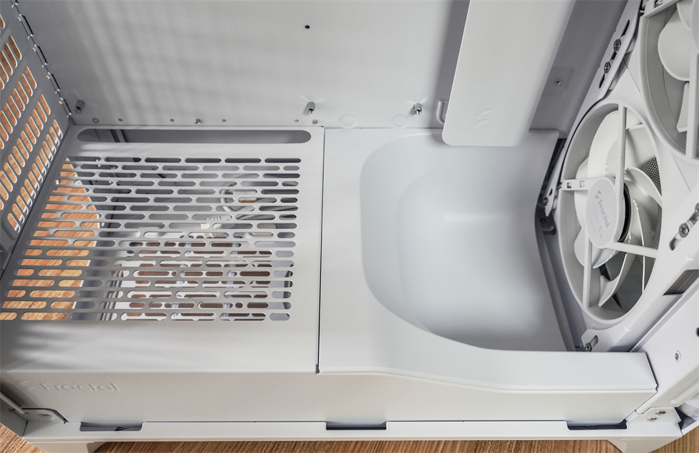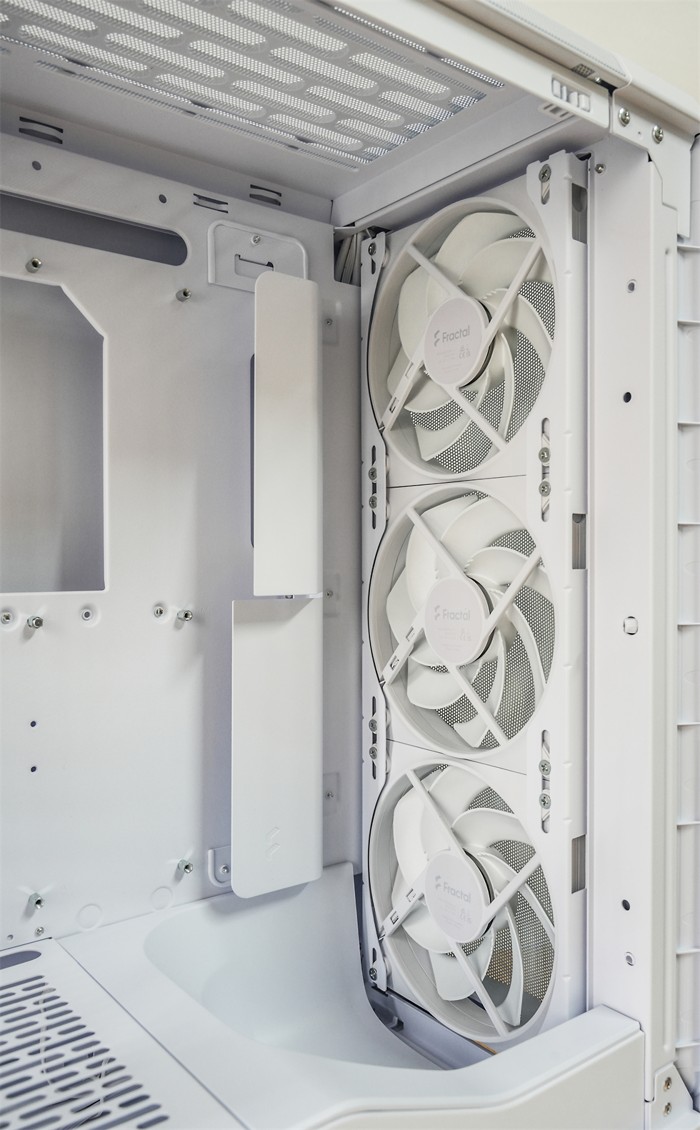 Meshify 3机箱除了预装Momentum 140mm风扇提供不错的散热,还通过气流导向设计将气流引导到显卡,进一步提高通风散热效果。