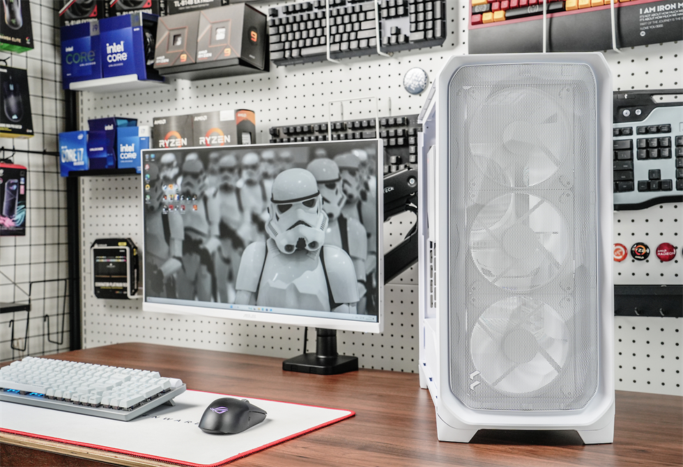 朋友最近找我帮忙装一台白色主机, 想要有点别致造型,但是对灯效不太看重,我合计了一下,推荐了分形工艺新上市的Meshify3机箱,结果朋友一下子就看上了前面板采用的岩石风格设计,摆在桌面上非常带感,于是就有了本次装机分享。