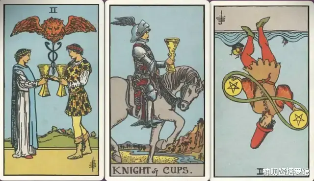 牌:恶魔+ 权杖八- 圣杯骑士-