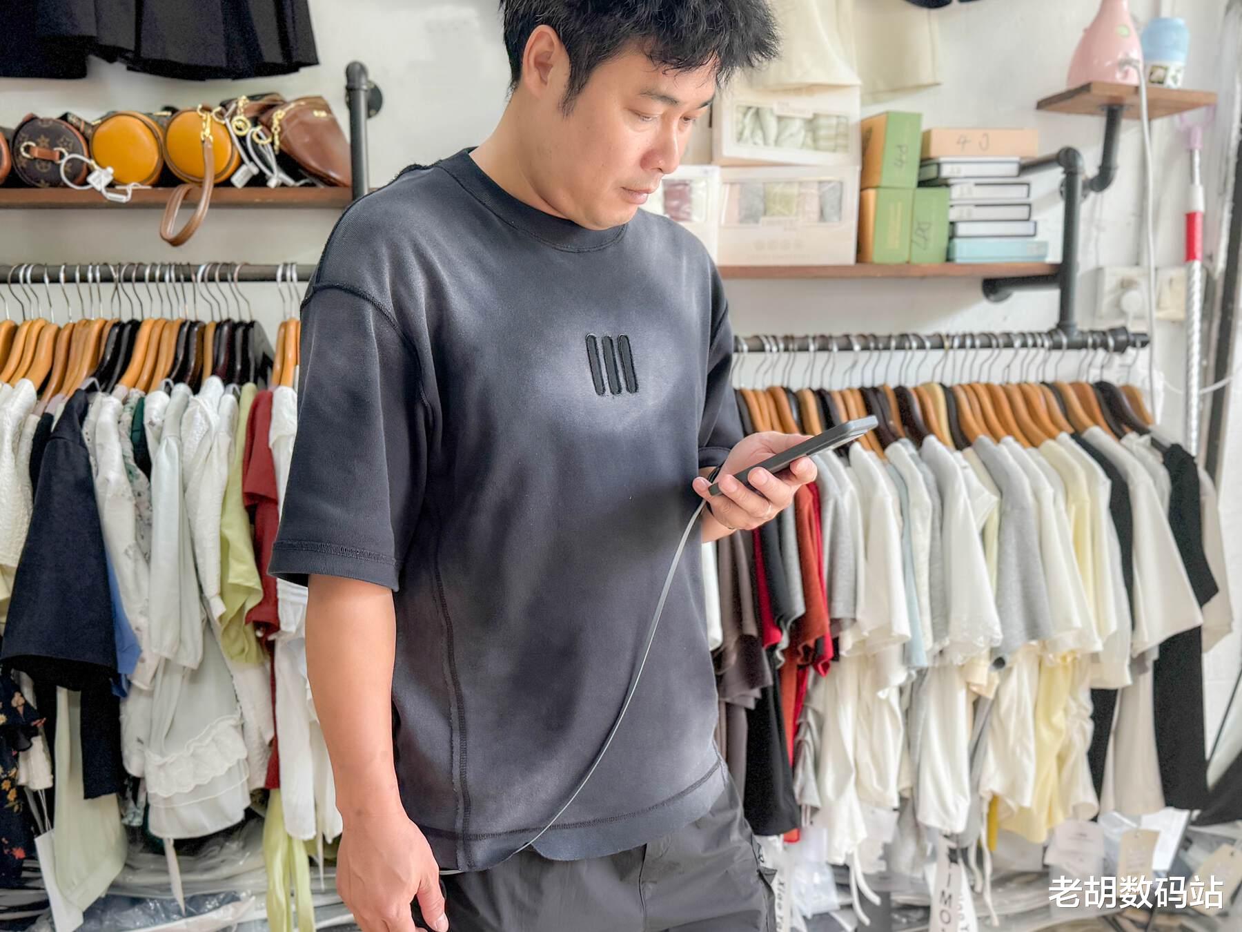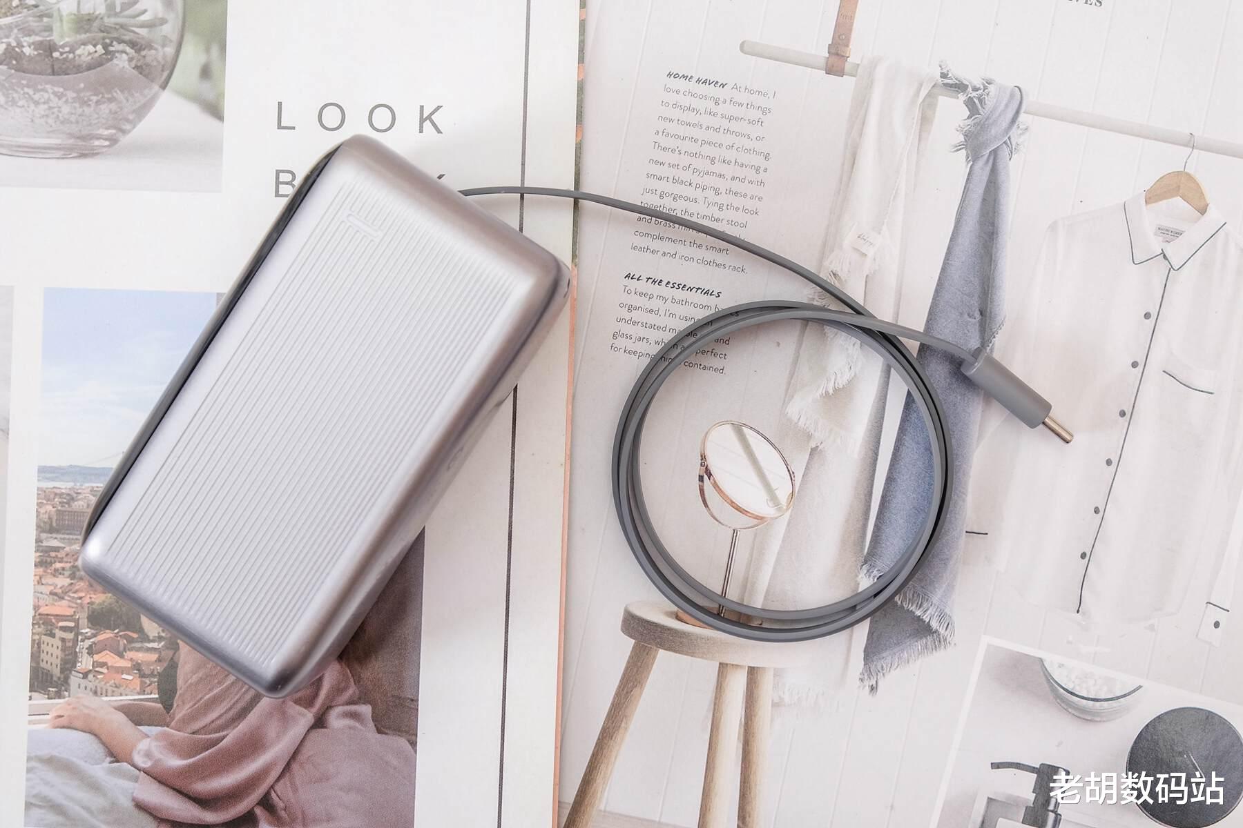 最让我觉得方便的是它自带了一根70厘米的伸缩线,像卷尺一样一拉就出,用完按一下瞬间收回,再也不用在包里翻来找去。定制的Super灵轴可实现随抽随停,长度自由控制,加上挂绳孔设计,可以直接挂在背包上,随时拉出充电,非常便捷。