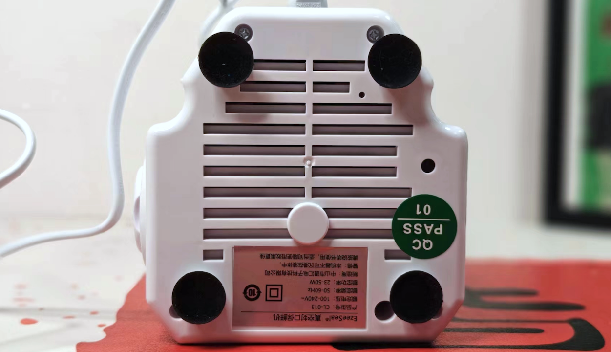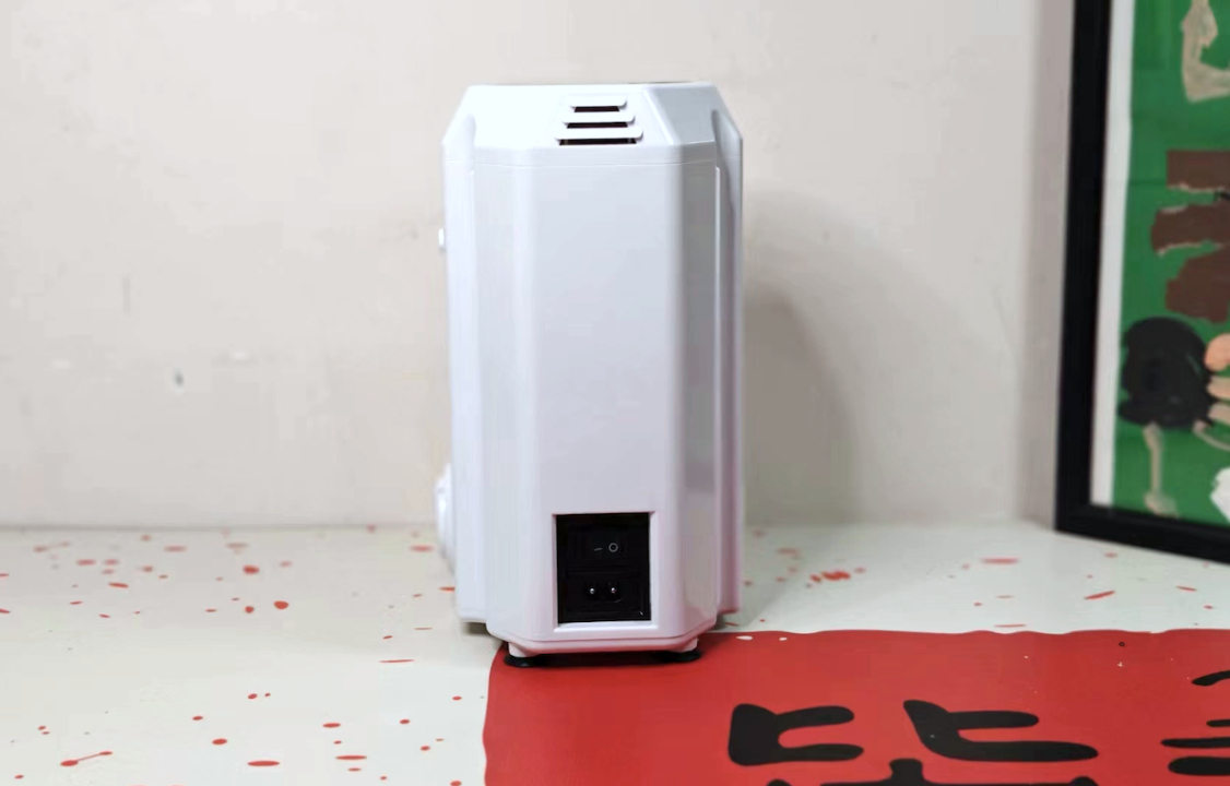插电和电源开关都在背部,机器带有自动断电保护,如果超过15min不使用则会自动关机,安全性有保障。