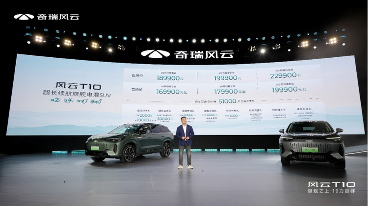 7月25日,奇瑞旗下的中大型SUV风云T10正式上市,新车共推出三款车型,分别是210km两驱尊享版18.99万元、210km两驱奢享版:19.99万元、200km四驱旗舰版:22.99万元。
