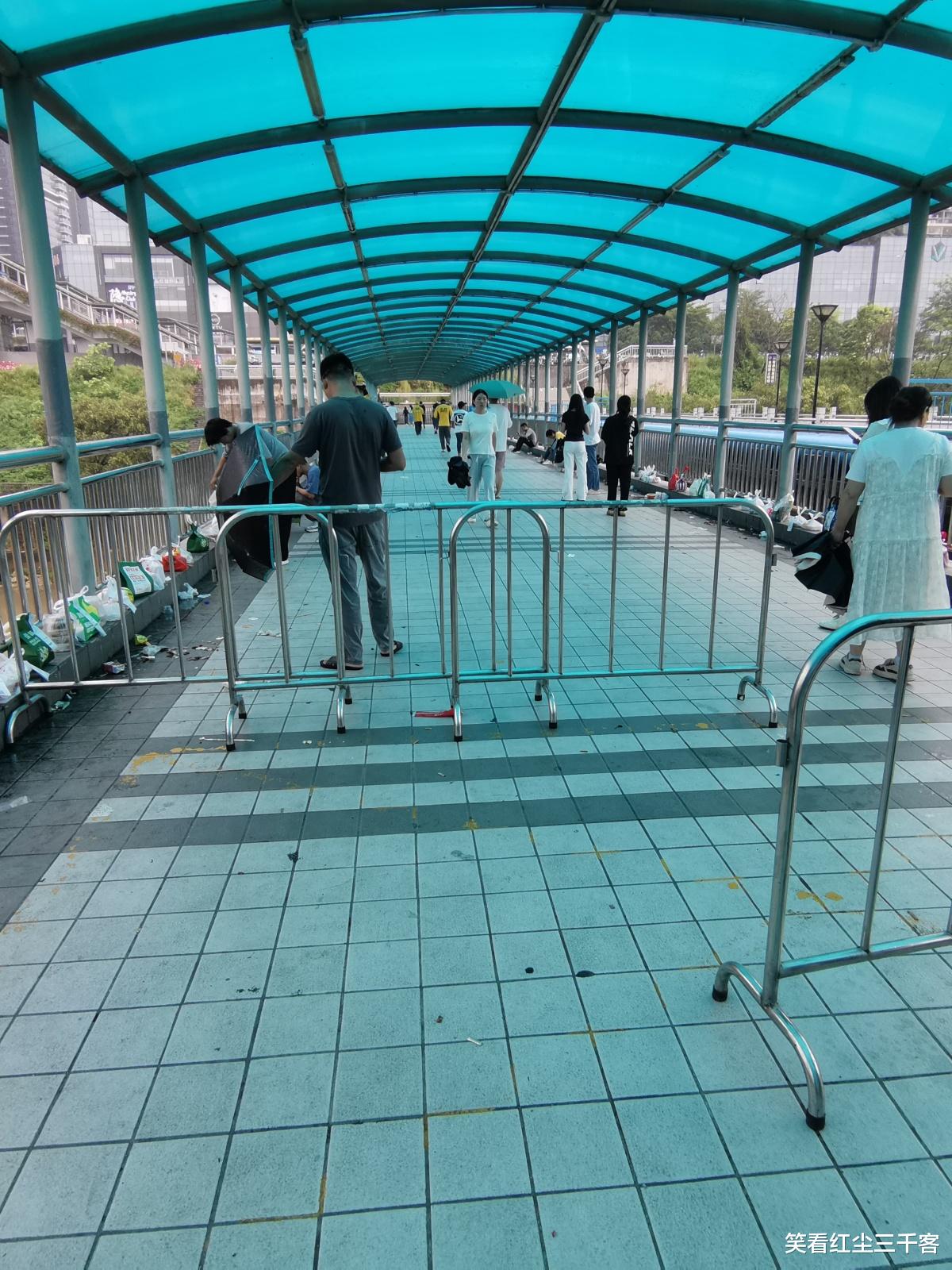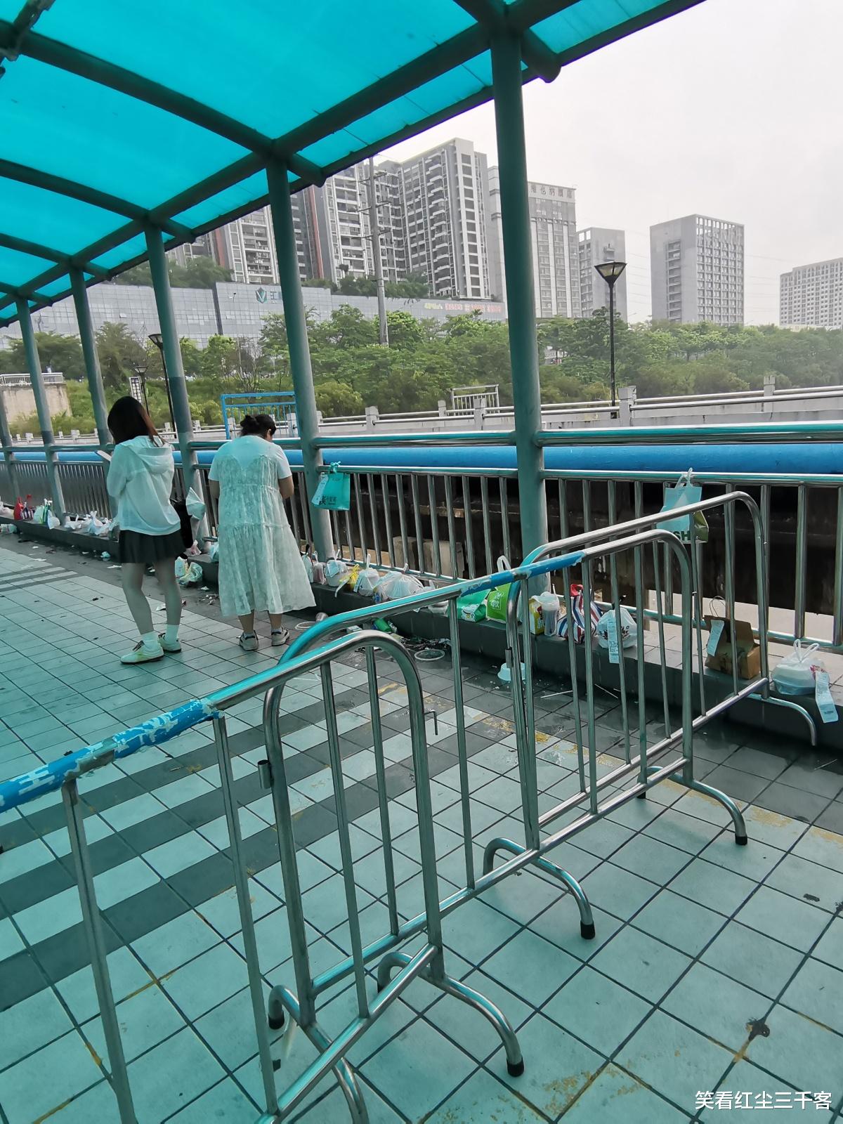你不摆放桌子也就算了,在栏杆处还挂了这样一个标语:此处禁止存放外卖
