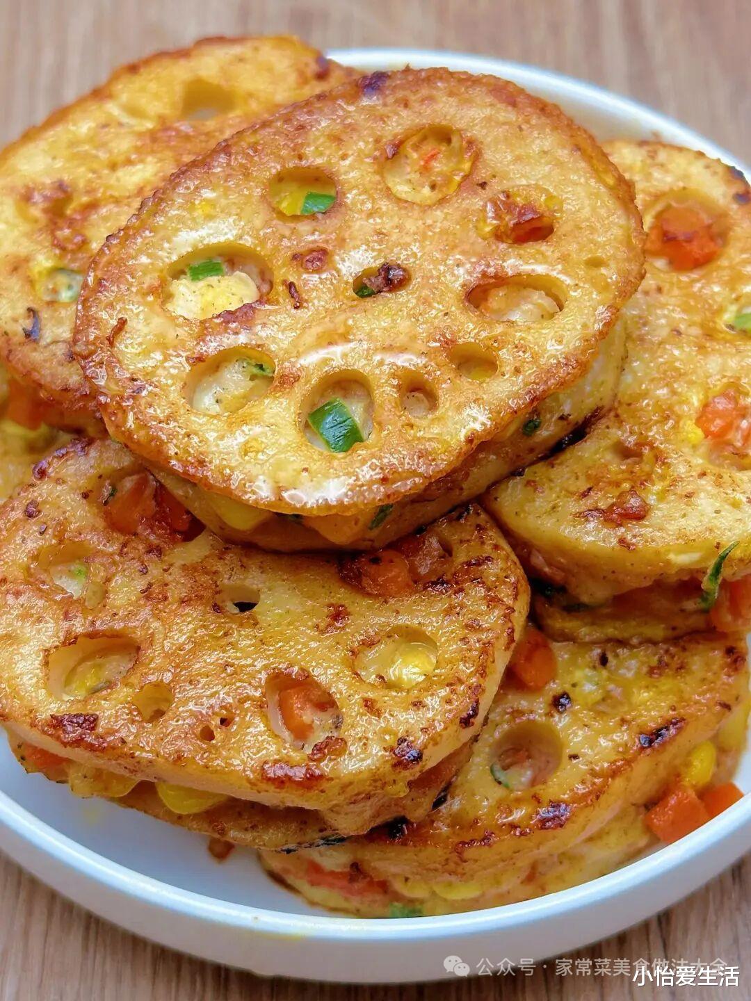 3 煎饼:平底锅刷一层薄油,小火捏小团下锅,轻轻按成饼,一面煎2分钟定型再翻面,两面金黄就能出锅。外酥里咬得到藕碎“咔哧咔哧”,汁水在齿间爆开,肉香混着清甜,蘸点番茄酱直接被孩子抢光。