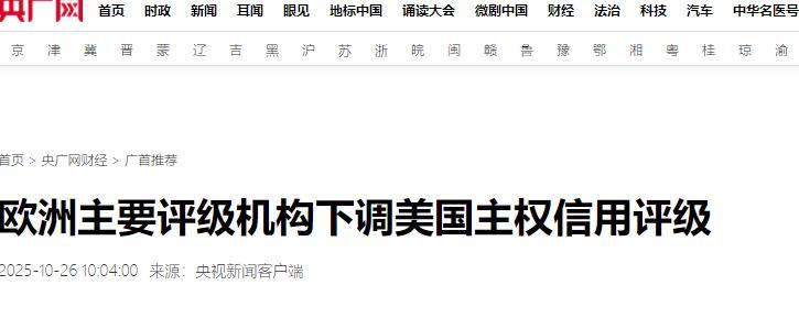 而就在10月底,欧洲主要评级机构也下调了美国主权信用评级,将美国主权信用评级从“AA”下调至“AA-”。