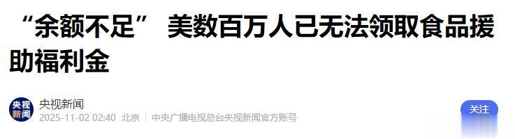 美国的“补充营养援助计划”原本要为约4200万人提供食物补助,但数百万人的该福利早已经因“余额不足”而失效。