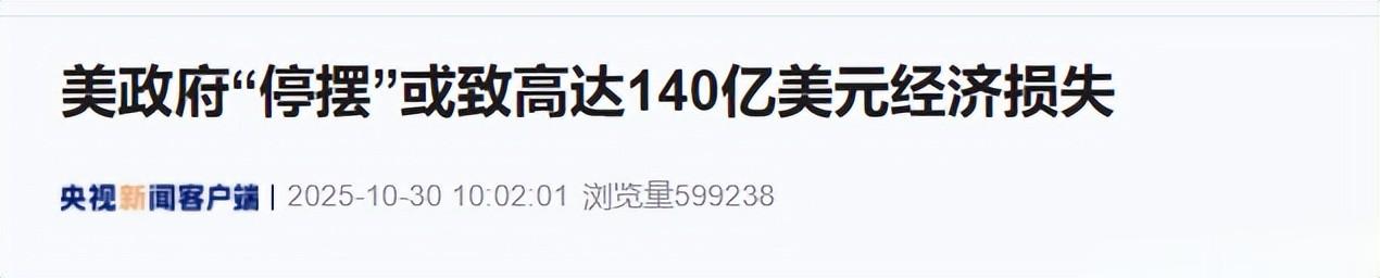越来越多的人不得不排队领取免费食物,国会预算办公室估算,这次政府停摆造成的直接经济损失在70亿到140亿美元之间。