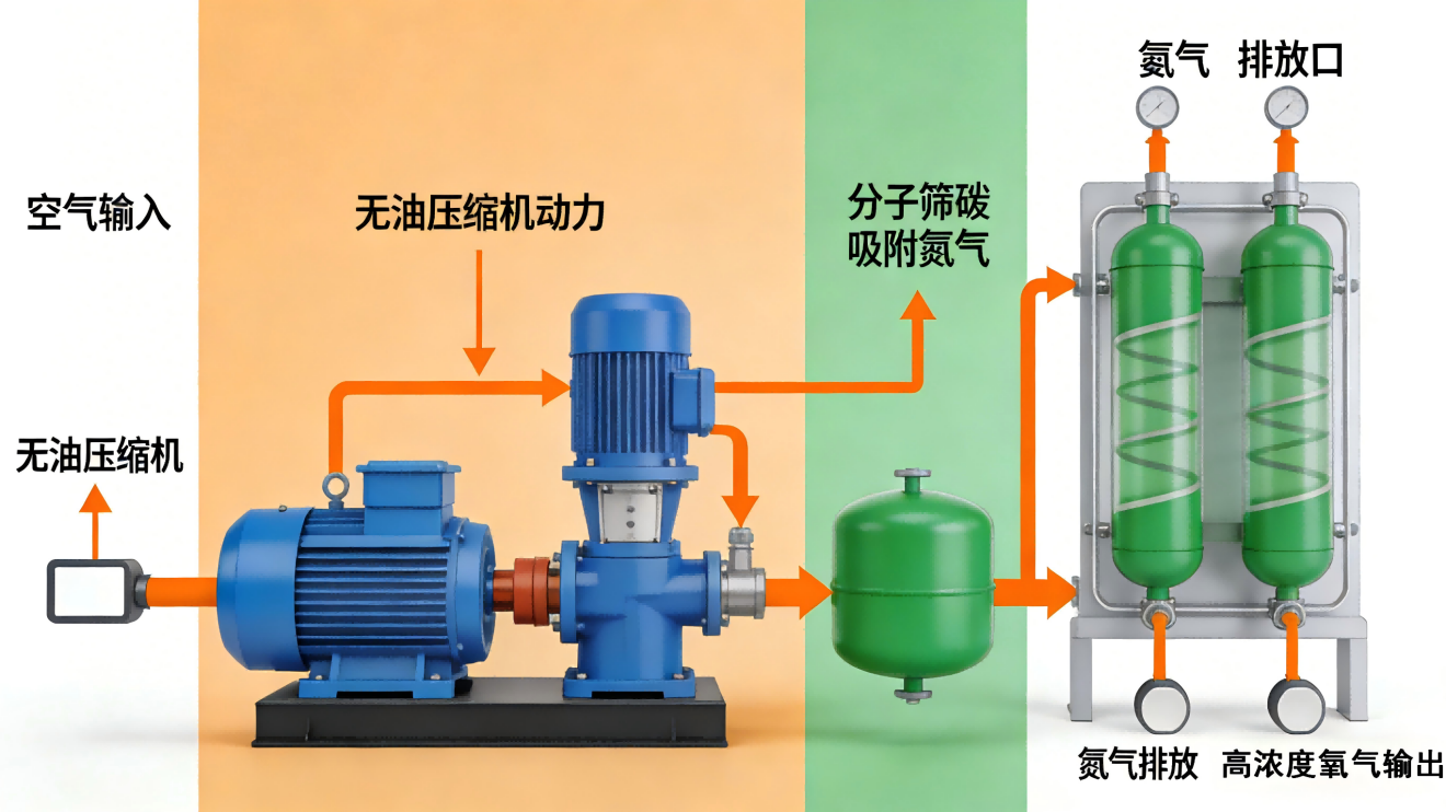 制氧机仅用于日常保健辅助,遵医嘱使用,核心作用就是日常舒适、减轻喘息。原理很简单,就是把空气中的氮气分离出去,提取高浓度氧气。