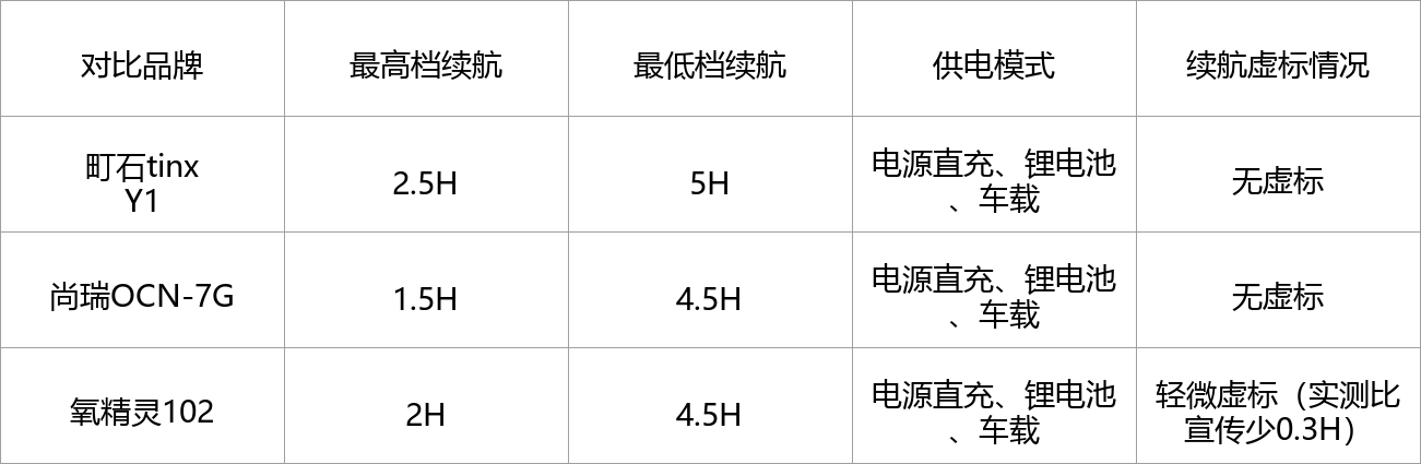 测评方法:仅针对3款便携制氧机,将它们全部调至相同档位,搭载原装电池,实测最高档和最低档的续航时长,测试是否存在续航虚标情况,同时测试车载、电源直充的充电速度。