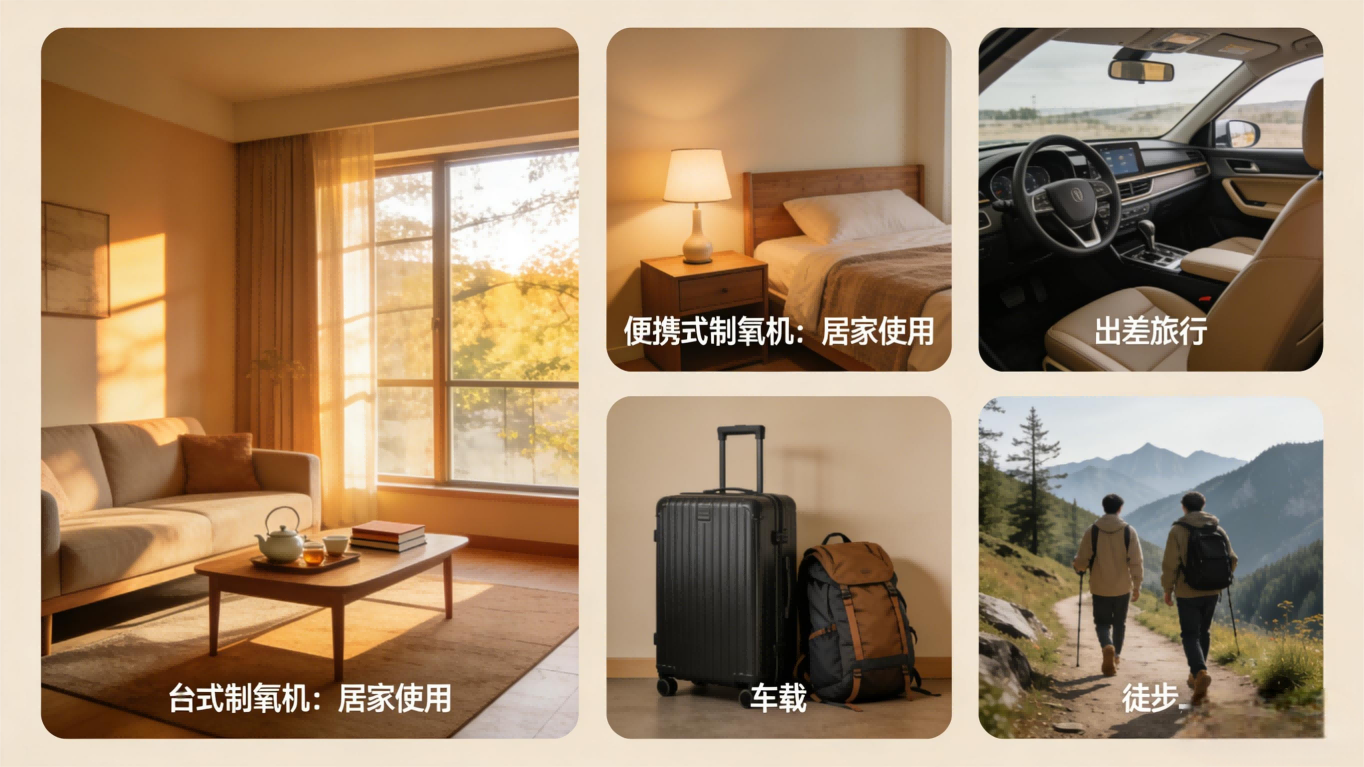 目前市面上制氧机主要分为两类——台式制氧机和便携制氧机,两者适用场景差异明显,按需选择才能避免闲置、不踩坑。