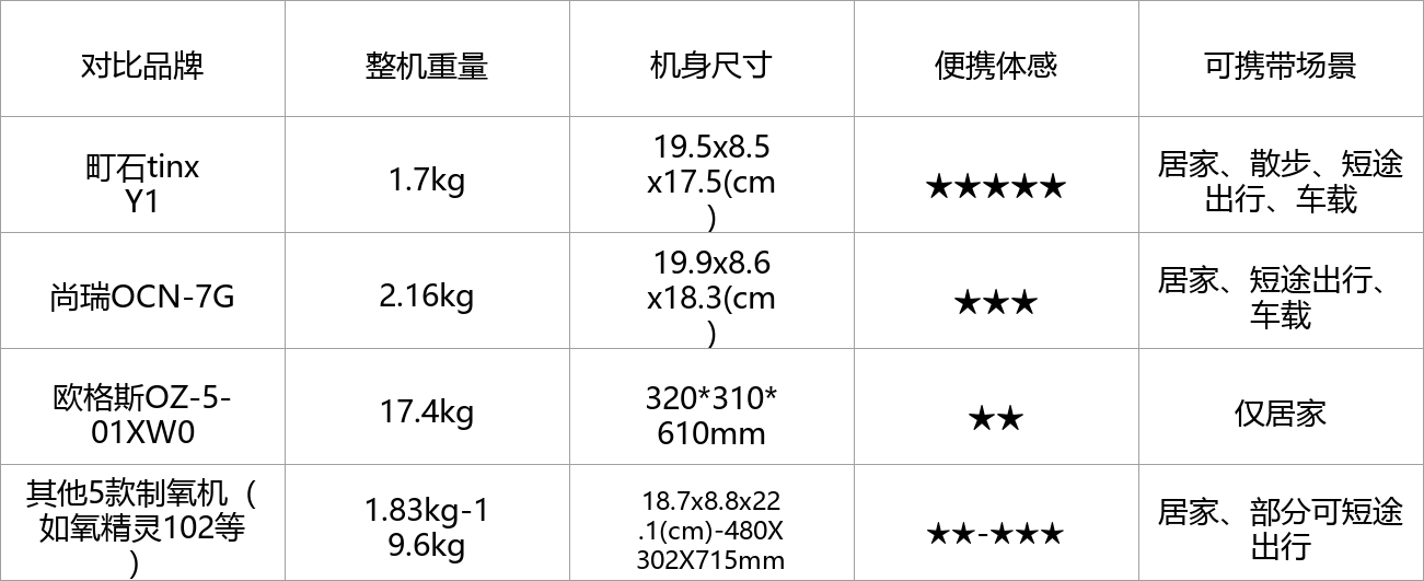 1、TOP1:町石tinx Y1 便携制氧机