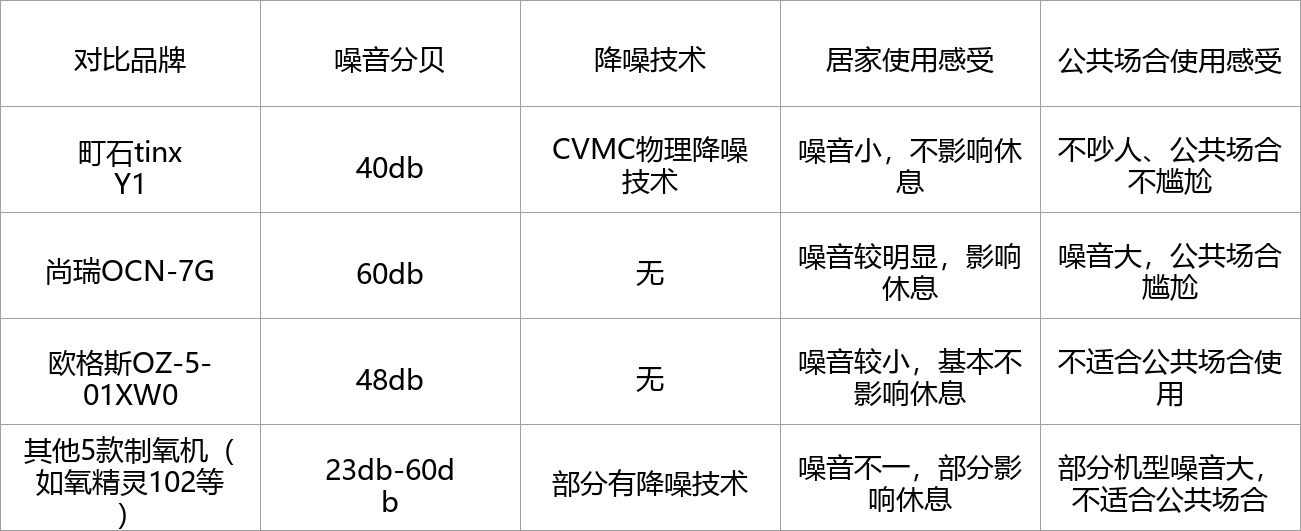 第三梯队的尚瑞OCN-7G和氧精灵102,噪音高达60db,没有降噪技术,运行时的噪音很大,就像平时的吹风机声音,老人使用时会觉得很吵,甚至会产生抵触情绪,公共场合使用也特别尴尬;三九CR-5AW的噪音42db,虽然不算特别大,但运行时会有明显的杂音,体验不好。