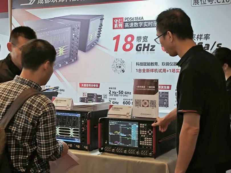 玖锦科技深耕电子测试测量领域数十年,聚焦高端仪器国产化、核心芯片自主化和测试系统智能化,产品线覆盖射频微波测量、高速及大带宽信号采集存储与分析、大带宽信号产生、复杂电磁信号模拟及自动化测试等领域。本次大会所展出的“守仁”系列高速数字实时示波器PDS6184A,具备18GHz带宽、80GSa/s采样率及2Gpts/ch存储深度等领先指标,可精准捕获脉宽ps级脉冲信号,可为光通信、大物理研究及半导体研发提供“超视力”支撑;“墨子”系列矢量网络分析仪VNA5000A与矢量信号分析仪PSA5000A整机可覆盖至50GHz,以宽频带、大带宽特性赋能卫星互联网、雷达天线等战略产业需求;“孔明”系列射频阻抗分析仪LCR1000A,是玖锦科技自主研发的国内首台基于射频I-V测量法的射频阻抗测试仪,拥有卓越的测量精度和较宽的频率范围、极快的测量速度、全面的兼容性、多种可选附件等特性,同时为测量射频器件的高频特性提供1MHz-3GHz的频率范围,可全面对标业界同类领先产品,彰显国产高端仪器从“跟跑”到“并跑”的技术跃迁。