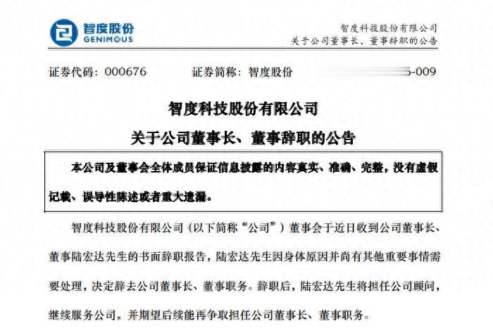 智度股份表示,近日收到公司董事长、董事陆宏达先生的书面辞职报告,陆宏达先生因身体原因并尚有其他重要事情需要处理,决定辞去公司董事长、董事职务。辞职后,陆宏达先生将担任公司顾问,继续服务公司,并期望后续能再争取担任公司董事长、董事职务。