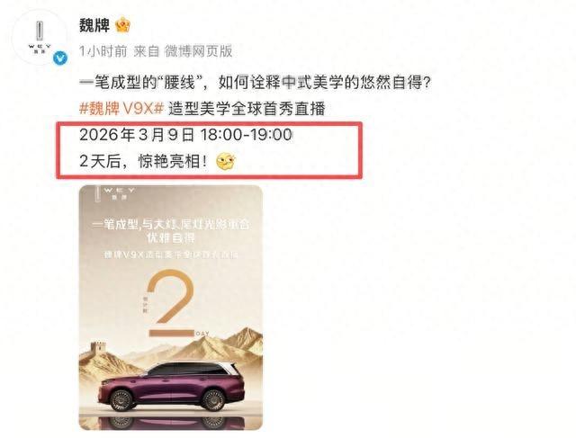 明天(3月9日)18:00,魏牌全新旗舰SUV V9X将迎来全球首秀,这场直播不仅是新车的正式亮相,更有长城汽车董事长魏建军亲自为其代言,看点直接拉满。