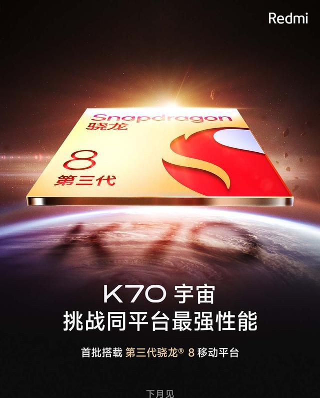 在配置方面,据了解,RedmiK70系列将会提供三个版本,RedmiK70E可能搭载天玑8300芯片或天玑9200+芯片,用于拉低起售价,RedmiK70将搭载骁龙8Gen2处理器,主打超高性价比,顶配版RedmiK70Pro才搭载骁龙8Gen3处理器,同时后置5000万像素OIS大底主摄+3.X中焦镜头+OV50D2x长焦,屏幕将采用一块2K分辨率的直屏,最高为24GBLPDDR5X+1TBUFS4.0的存储组合,配备5000mAh电池,支持120W有线快充和50W无线充电。