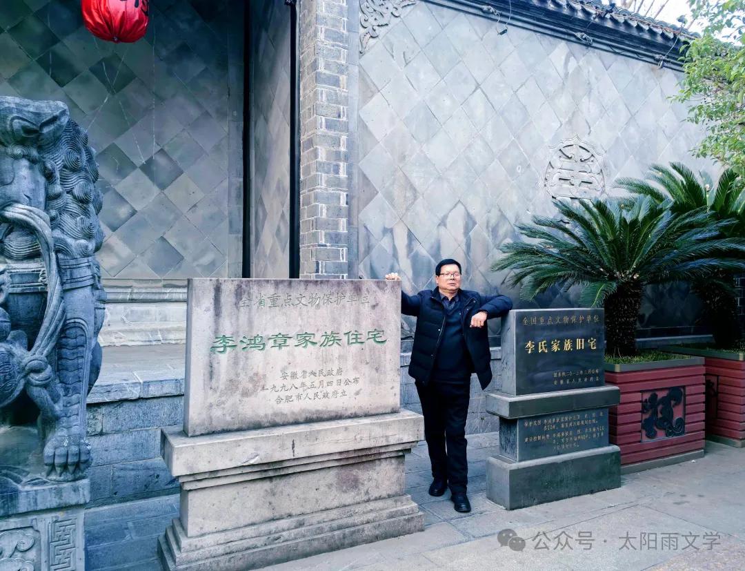 暮色渐沉,众人依着身体状况各自散去。郑华岭与毕明两位老师,陪着远道而来的客人,去了三国故地——当年张辽以八百将士大破孙权十万大军的古战场。红红灯笼挂满梧桐枝,张辽的青铜雕像立在广场中央,凛凛威风依旧。文友们站在雕像前合影,寒风里,鲁皖的笔墨情谊,竟与三国的豪情相融,成了别样的风景。龚老虽未能同往,却反复叮嘱“多拍些照片,回来讲给我听”,那份对远方与故事的热爱,从未因年岁与身体稍减。是夜,客人们在梅里美宴宾楼下榻,次日便匆匆踏上归途。相聚的时光总是短暂,却像一粒饱满的种子,在心底生根发芽。