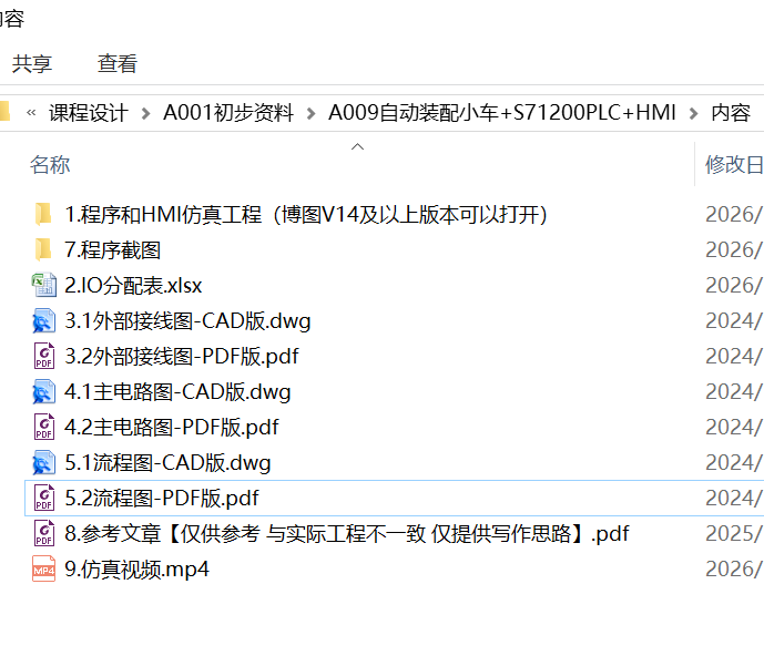 系统设计完成情况总结:本课题成功完成了基于博途西门子1200PLC的自动装配小车控制系统设计,包括硬件选型、I/O分配、接线设计、PLC程序编写、HMI组态及仿真测试等全部工作,形成了完整的自动化控制系统方案。