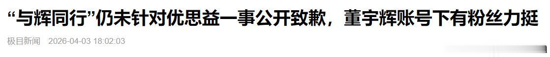 极目新闻 ——“与辉同行”仍未针对优思益一事公开致歉,董宇辉账号下有粉丝力挺