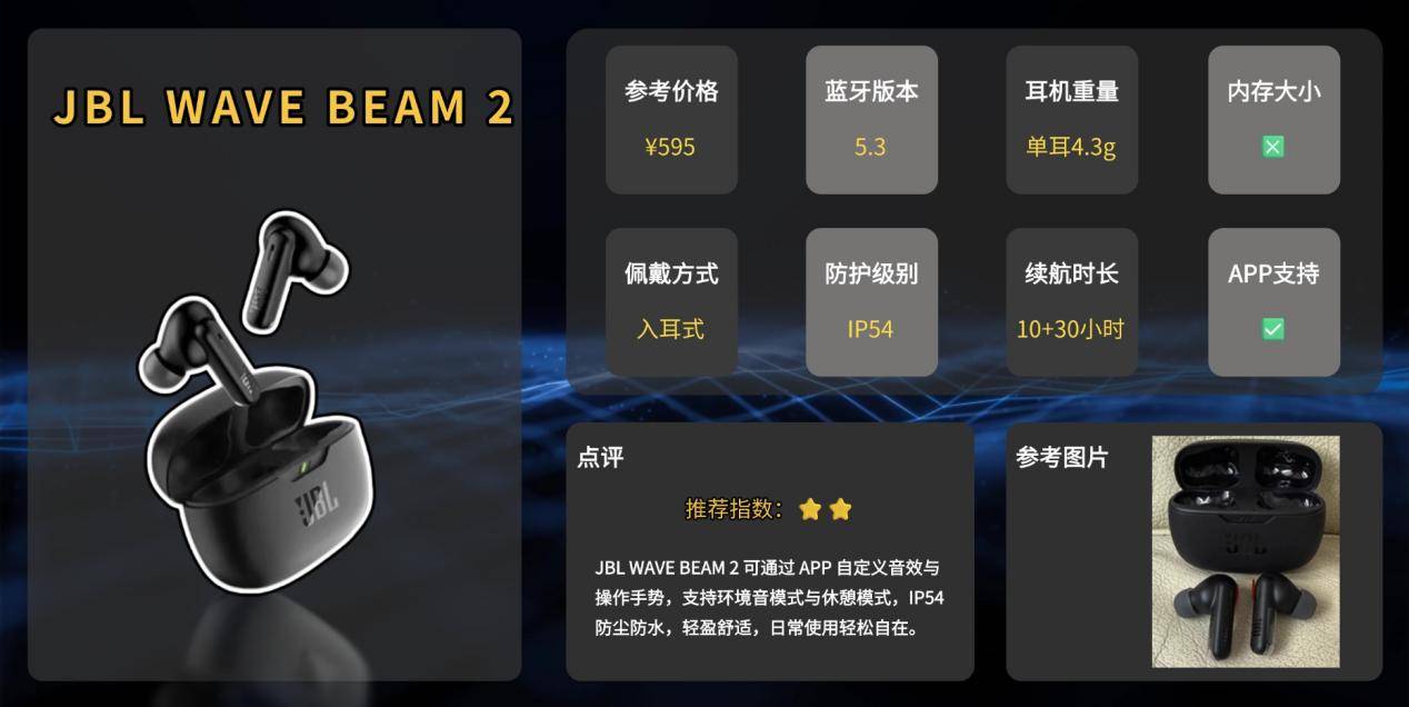 JBL在耳机市场一直以高音质和丰富音效调节闻名,技术研发偏向音乐体验和智能功能。WAVE BEAM 2在JBL产品线中属于中端真无线耳机,主打定制化音效和智能环境声管理。