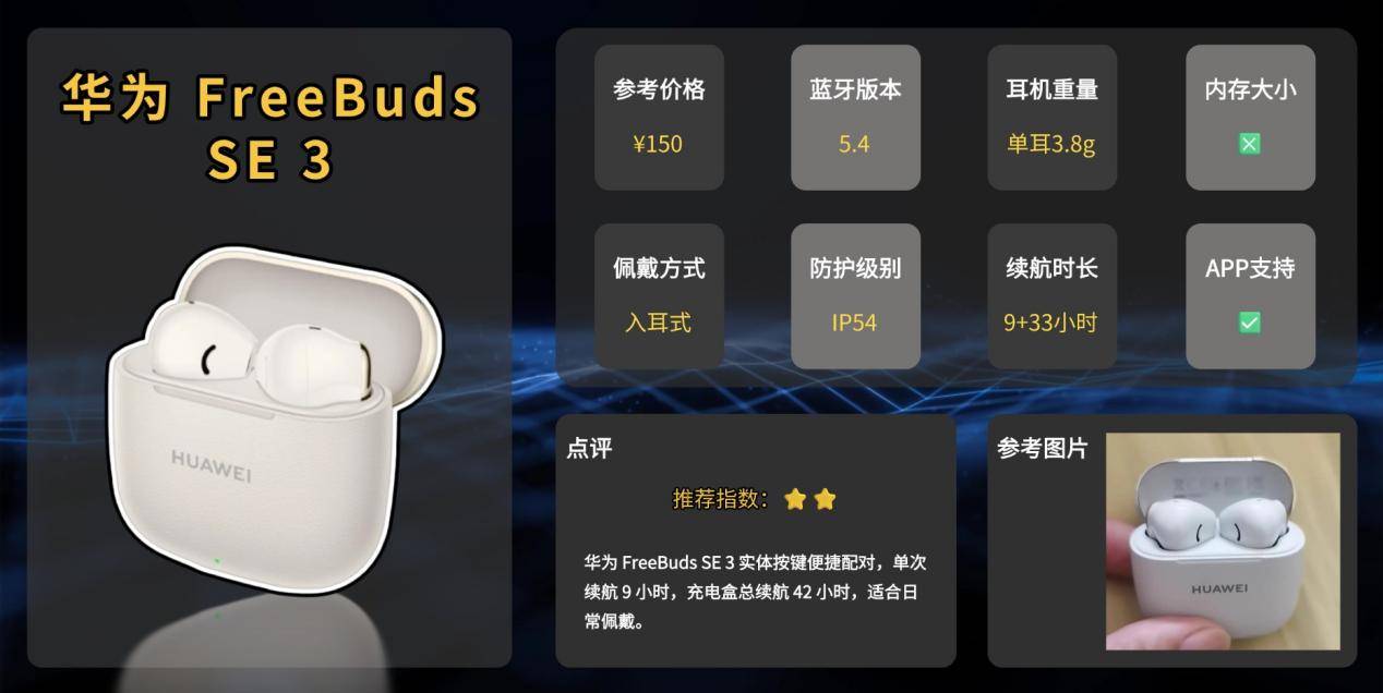 华为在耳机市场以高性价比和智能生态互联见长,技术研发在续航和轻量佩戴上有积累。FreeBuds SE 3在华为产品线中属于入门至中端真无线耳机,主打轻便舒适和长续航体验。