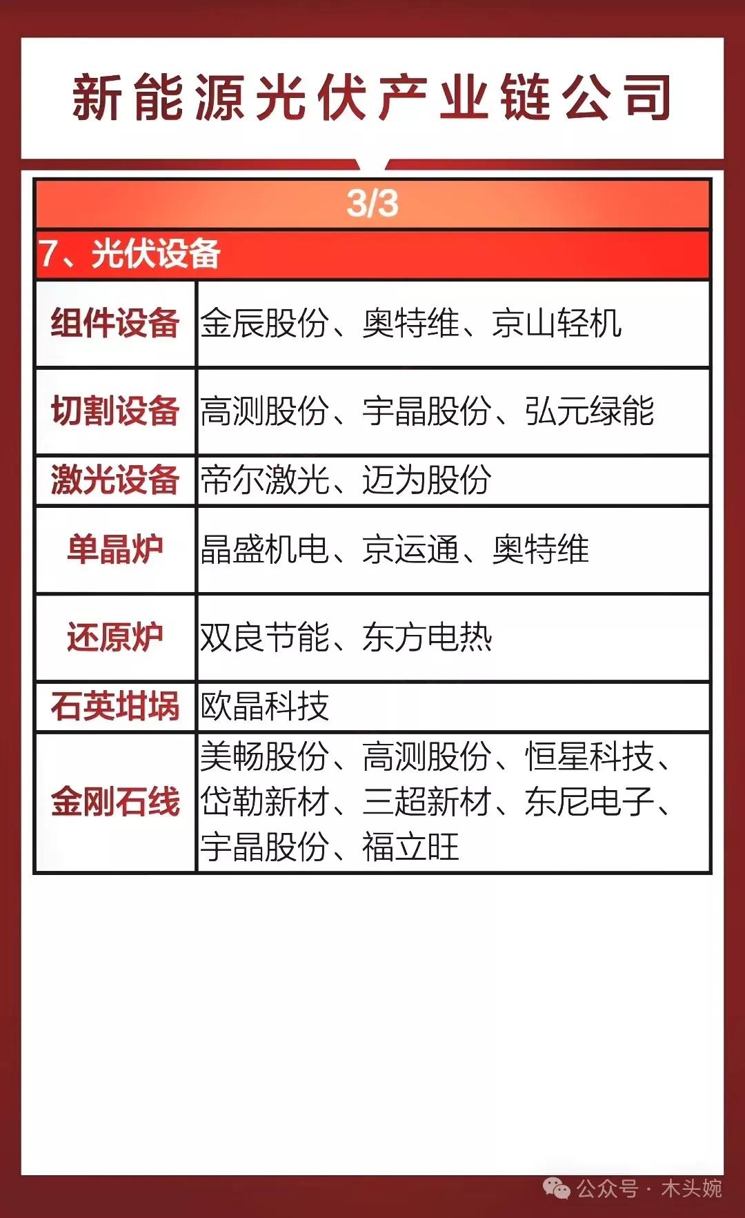 新能源光伏产业链细分龙头梳理!