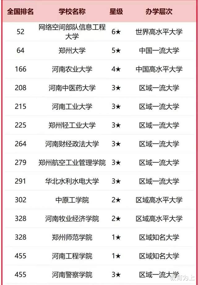在这份榜单中,信息工程大学居郑州市高校首位,是一所低调而实力强大的高校,居全国高校第52名。