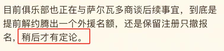 虽然现在还不知道萨尔瓦多的合约将怎样处理,是暂时不报名,还是就此解约,目前还没有定论。