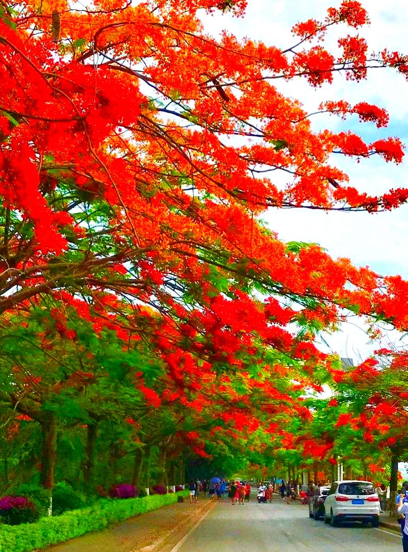4 月,凤凰花开得热烈而灿烂,那火一般的红色填满了人们的视野,好似在诉说着这座城市的热情与活力。与此同时,三角梅也进入了盛花期,粉、白交织的花墙、花廊在阳光的照耀下绚丽夺目,成为街头巷尾最靓丽的风景线。