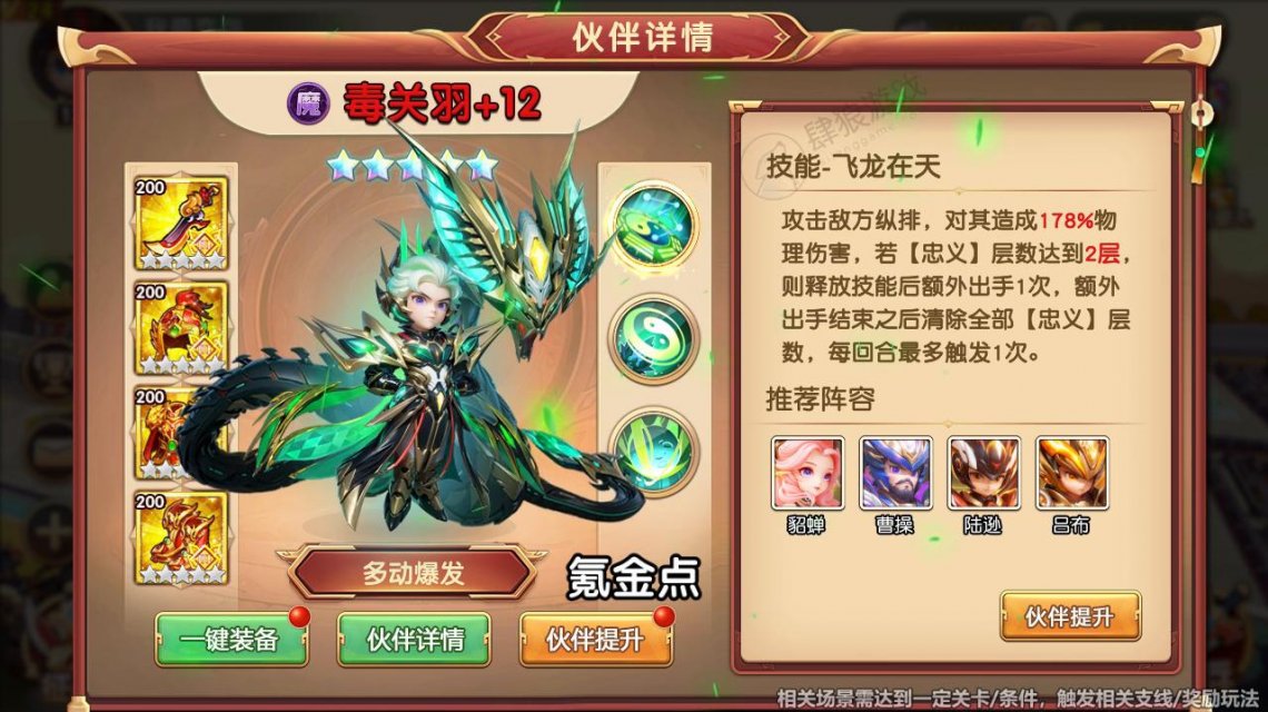 阵营搭配技巧:除了推荐阵容,也可尝试同阵营武将搭配,激活阵营羁绊属性,进一步提升战力。