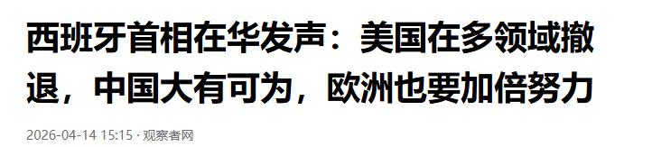 西班牙首相在华发声:美国在多领域撤退,中国大有可为,欧洲也要加倍努力——观察者网