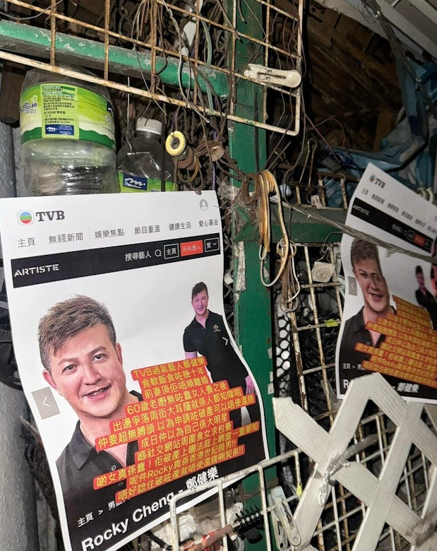 近日有市民在街头贴大字报,指控郑健乐吃软饭几十年,前妻都顶不住选择离婚,因为没有女人养就到处借钱,然后申请破产逃避责任,自诩是大明星在社交平台到处找女人包养。